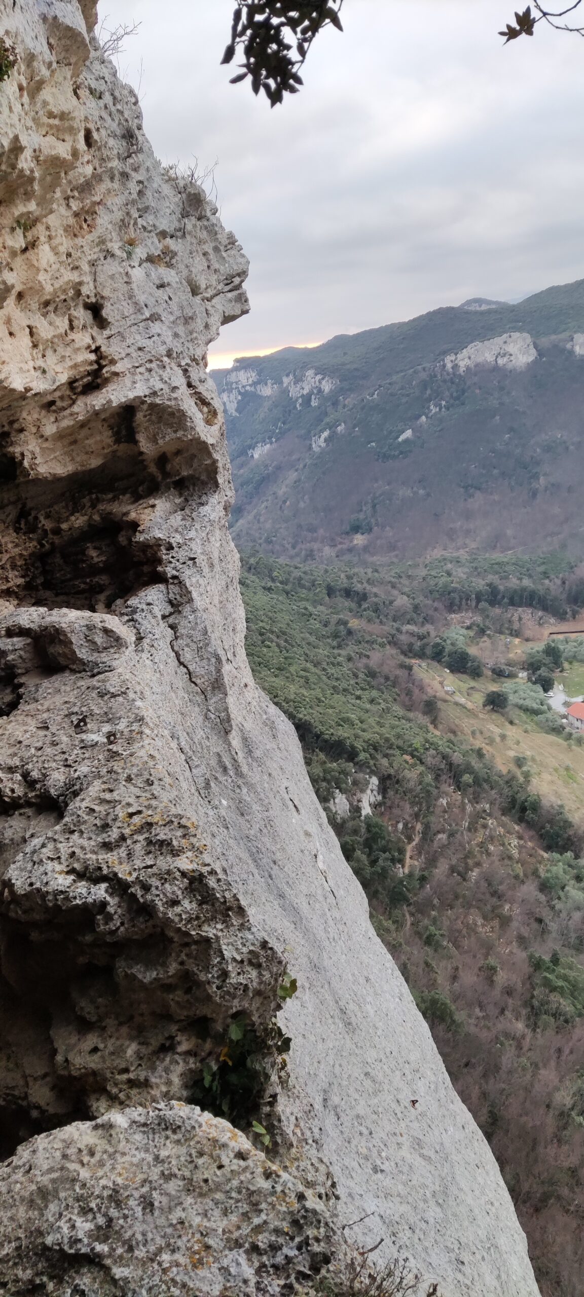 Si arriva in una bella grotta bucata (ovviamente nulla di comparabile alla grotta dell’edera ma comunque particolare) e da li si scende nel canyon. Si risale lievemente verso sinistra (spalle alla via) e si seguono le corde fisse per tornare verso il parcheggio. Noi abbiam lasciato l’auto poco dopo il camping Monte Cucco, c’e’ uno spiazzo abbastanza grande.