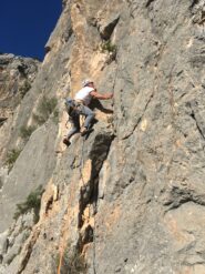 - L3 , da qui si effettua un delicato traverso a sx , passo chiave 6c+ , si sale su un tettino attraversando sempre a sx per poi salire dritto fino alla terza sosta