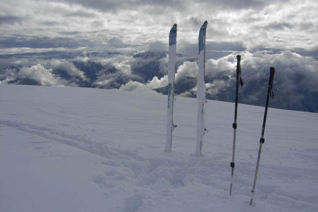 Partito h 10.45 dietro l’ultima baita di fraz Goria con sprazzi di sole e nubi vaganti. Dopo aver tracciato i primi 70-80mt ho poi trovato una bella traccia proveniente dall’altra parte del paese.. che fortuna partire tardi.. ma d’altro canto le previsioni cosi’ consigliavano.Arrivato in cima alle 12.00 quando ormai i 5 tracciatori erano gia’ scesi. Dopo di me altri 7 ski-alp e 1 con la tavola. Sceso h 12,30 . Farina leggera fino a 1900 mt poi piu’ umida ,solo leggermente appiccicosa , ben sciabile nei tratti un minimo piu’ ripidi mentre nei falsopiani conveniva seguire la traccia di salita o quelle di chi era gia’ sceso !