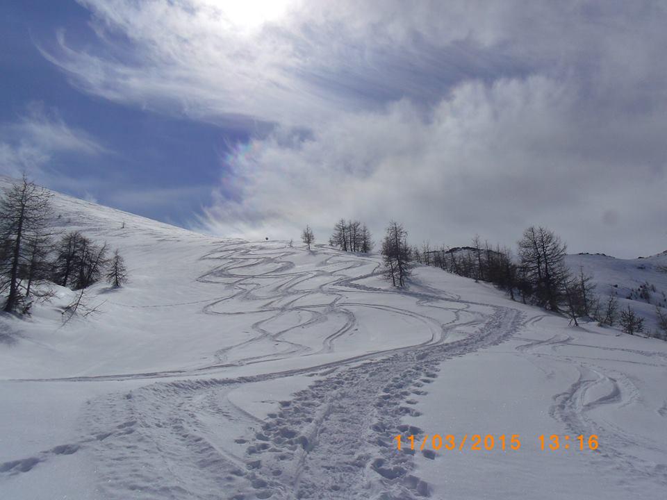 Come alla Bettaforca, anche qui battuto un percorso x racchette e skialp (che si puo’ prendere dalla partenza della seggiovia aggiungendo 200m di dsl) ben segnalato fino al Rif. Meira Garneri, aperto.