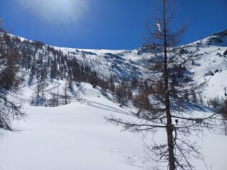 Discesa un po’ tracciata ma su bella farina nella parte alta. Nella parte centrale si appesantisce e diversi di noi hanno avuto problemi con formazione di zoccolo. Appena arrivati agli impianti siamo rientrati sulle piste.