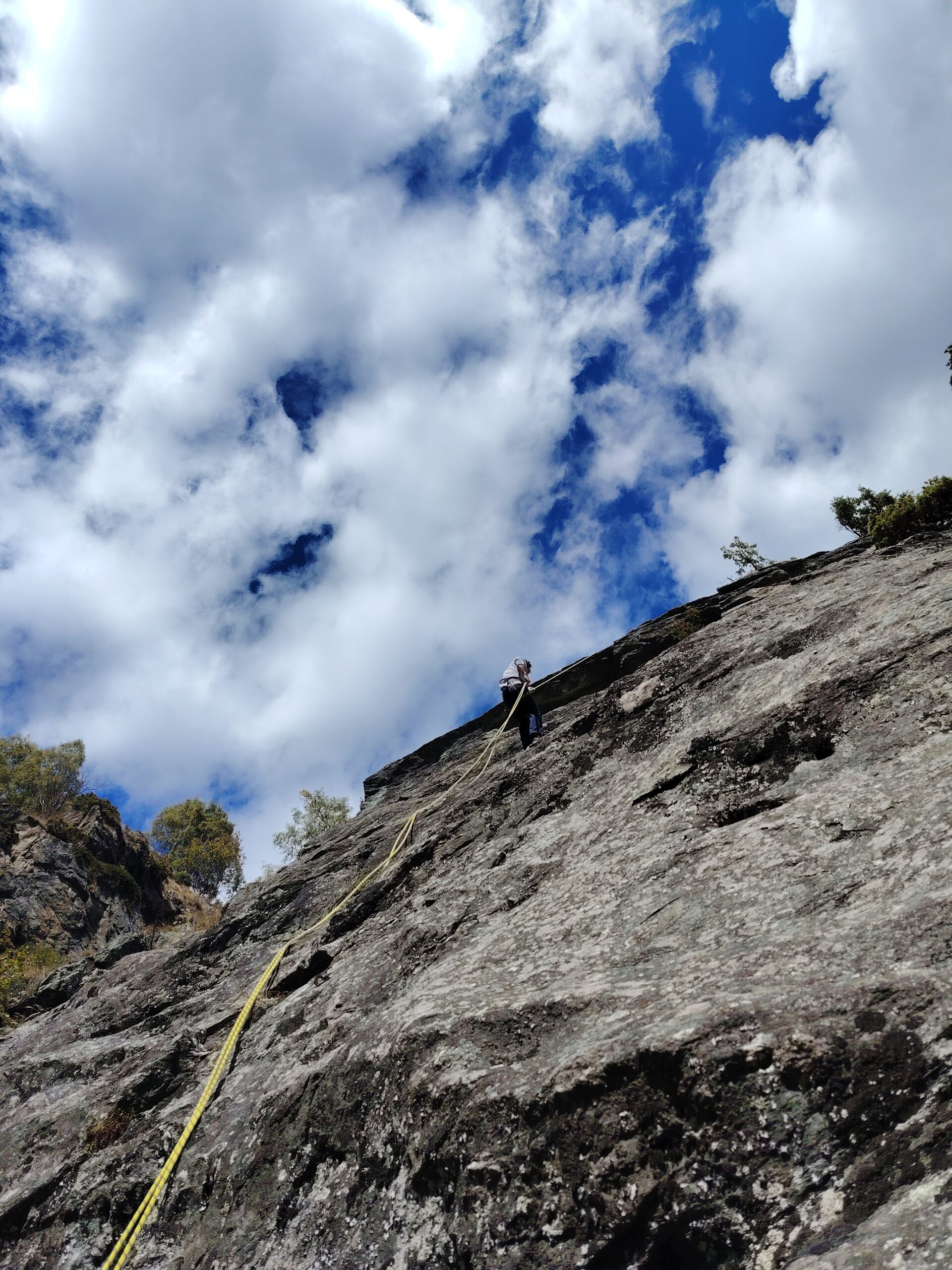 - L1: il tiro inizia con una bella fessura che si trasforma in un traverso su placca verso destra 6A