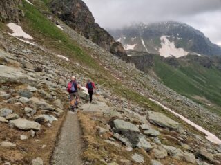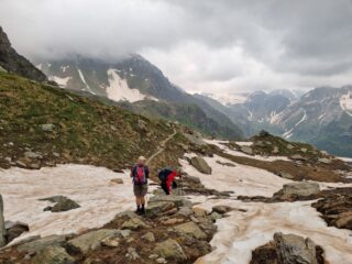 Rifugio aperto. Dal parcheggio bisogna aggirare l’osteria sulla destra causa un cantiere che non permette di imboccare il sentiero alla partenza. Qualche nevaio in discesa dal col du Salve fino al bivio per il passet. Sul sentiero in traverso abbiamo trovato il torrente ingrossato, quindi siamo scesi qualche decina di metri sul pendio per attraversarlo più comodamente e prendere poi il sentiero che sale dalla Tsa Chavalery a riprendere il sentiero ” ufficiale”. Ancora qualche piccolo nevaio un pò ripido prima di raggiungere il rifugio.