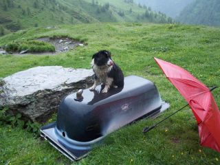 Con un tempo così,sono ugualmente “cuntent” di essere arrivato poco oltre l’Alpe Crosenna,un guado con una grande quantità di acqua particolarmente arrabbiata ci sbarrato la salita. Ma è stato uno spettacolo bellissimo una grande quantità di cascate tuonanti e rombanti,ha reso questa passeggiata particolarmente suggesiva,però per vedere tale spettacolo bisogna aspettare il momento “migliore” quando la perturbazione è più violenta…La meno “cuntenta” è stata Jolie,lei non apprezza queste cose e tantomeno l’acqua…