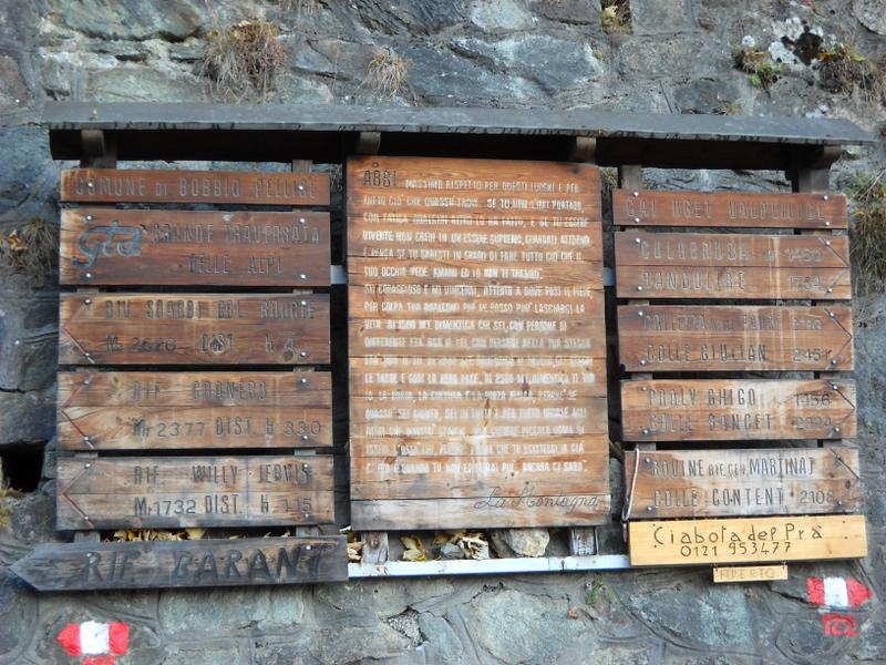Percorso l’anello al contrario salendo da Villanova, Culubrusa ,Randuline e col Bancet ( ore 2 e 45 )sceso poi per la mulattiera dell’alpe Crosenna fino alla casermetta presso col Content, qui però sono sceso dal ramo di sinistra che percorre il vallone del rio Bouciè ed arriva direttammente su Villanova ( 2 ore e 30 ). Anche qui si segue una mulattiera come per il tratto precedente, ma ancora più sinistrata ( frane, massi ed inerbimento ), tuttavia è percorribile con un po’ di cautela ( nel punto più stretto del vallone sembra svanire, ma dopo una decina di metri riprende).Ovviamente in caso di nebbia oppure maltempo conviene evitarla.