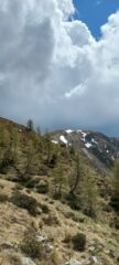 Siamo partiti da Faetto, abbiamo preso il sentiero sulla sx che porta alla borgatina di Albournú per poi raggiungere per boschi Prato del Colle, si perde poi dislivello e si raggiunge Pitoniere. Da lì con un comodo e segnato sentiero abbiamo raggiunto il colle della Roussa. Infine abbiamo conquistato la punta Courbasiri, non siamo giunti al Bocciarda per il tempo estremamente incerto ed onestamente siamo giunti alla macchina prima del forte temporale.