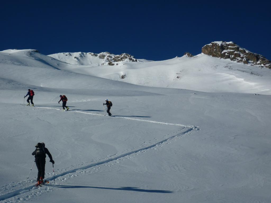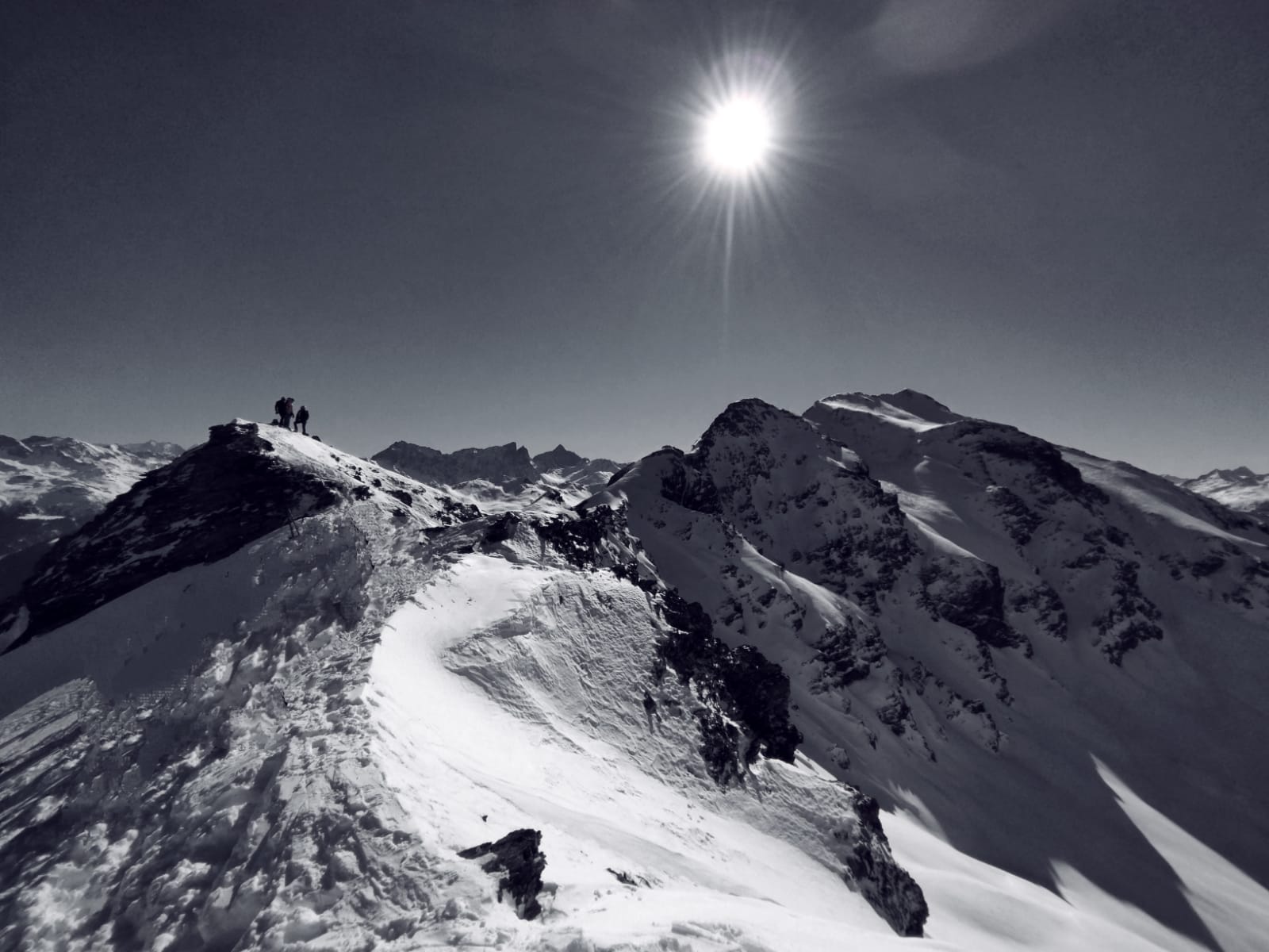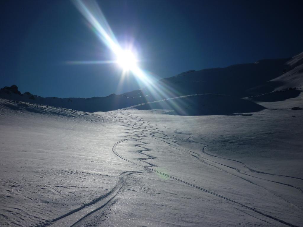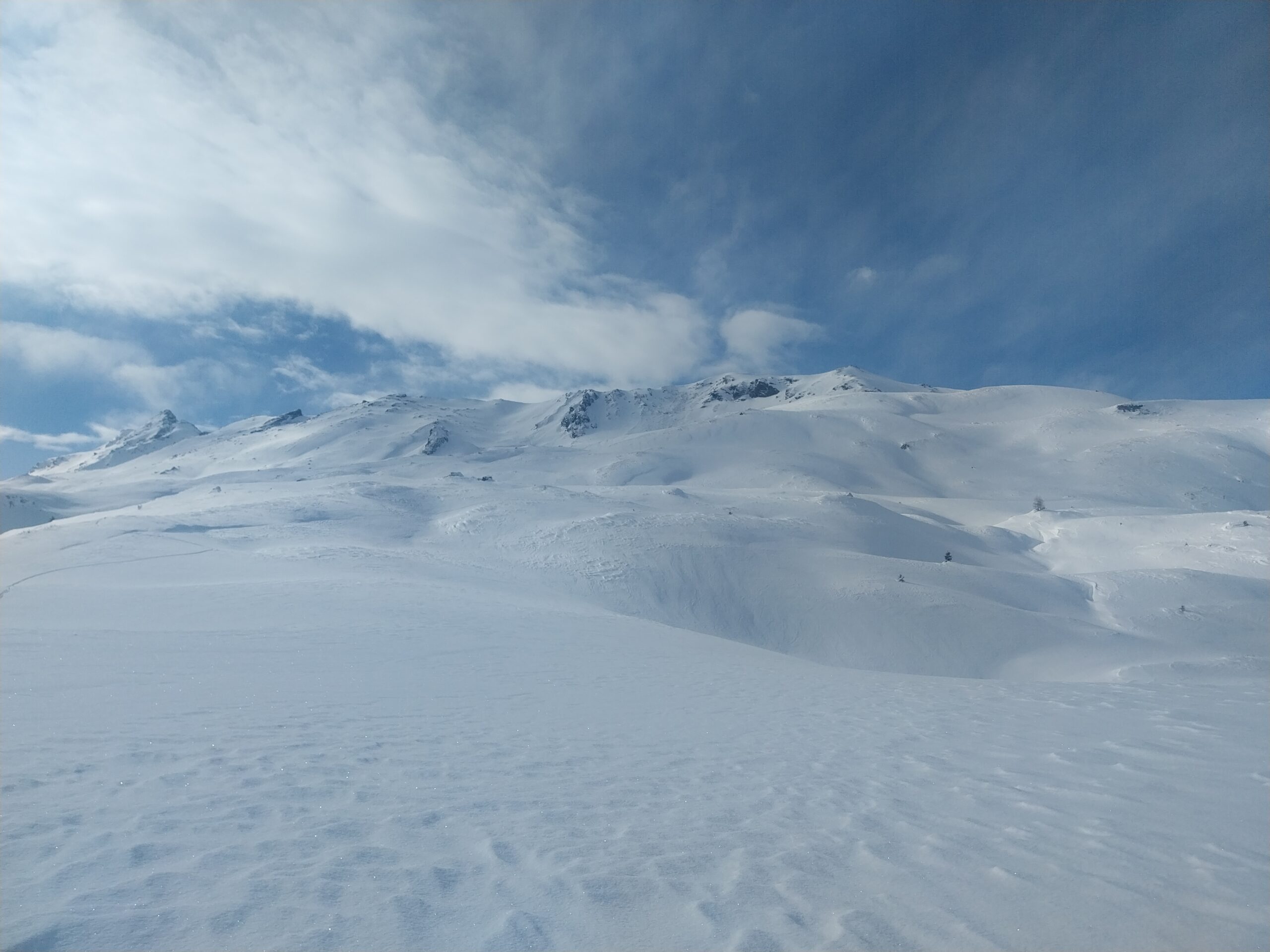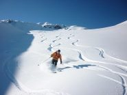 Da qui tenendosi leggermente a sinistra dell’ultima baita entrare nel bosco ben praticabile e superarlo per spuntare sulle radure di Munter (1944m). D’ora in avanti l’itinerario si fa aperto e evidente: risalendo gli ampi e moderatamente inclinati pendii esposti a NE portarsi sino alla base delle costole rocciose che portano alla vetta e, a seconda delle condizioni arrivare in cima direttamente tenendosi a destra dell’ultima costola o risalire il pendio centrale.