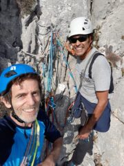 Specialmente i due 6b+ che secondo me sono più vicini al 6c anche se magari solo su un passo. Il secondo specialmente mi ci sarà voluto almeno 10 o 15′ per capire come farlo non so se per colpa delle scarpe un pò svase. E poi lungo 40m con la seconda parte di forza e continuità.