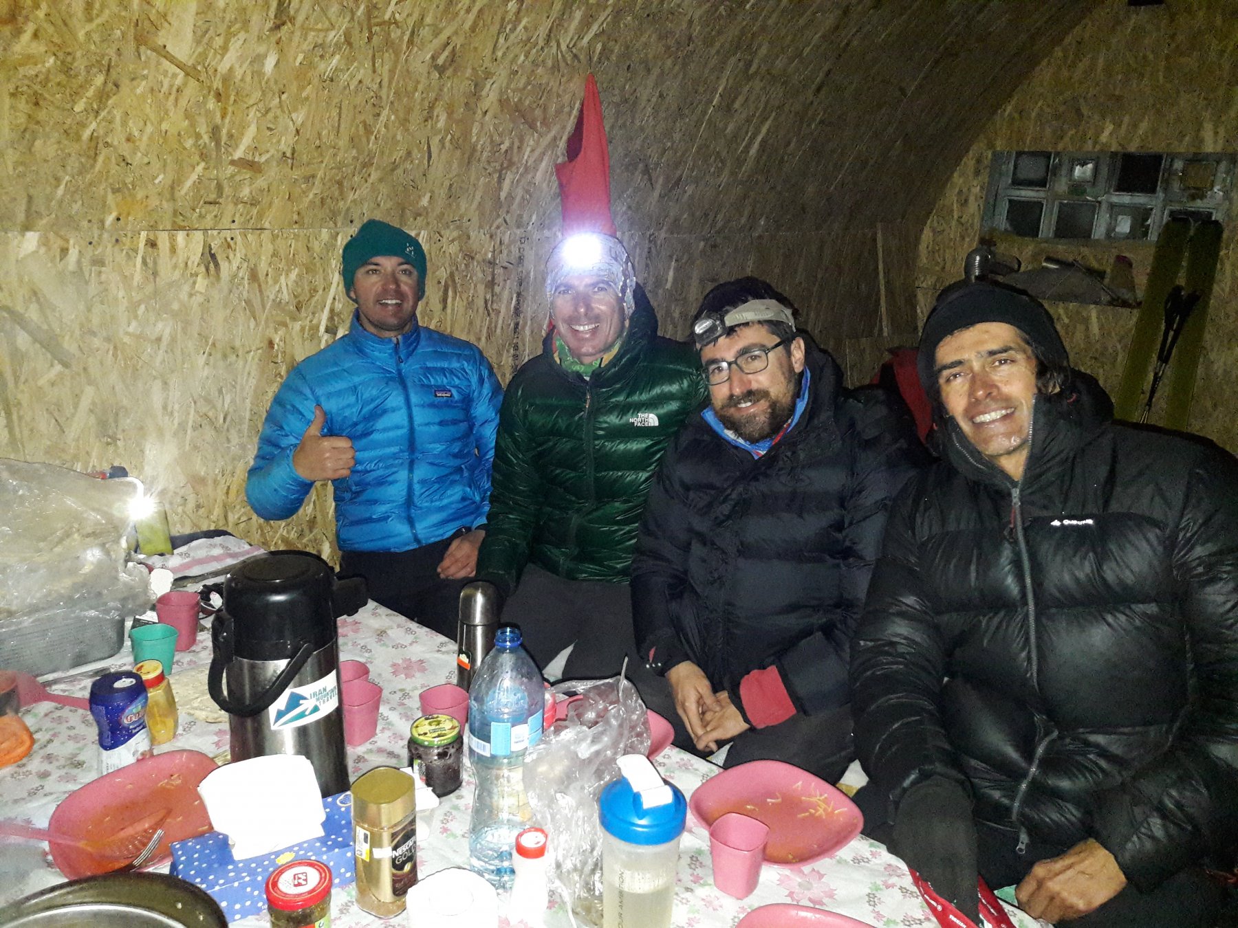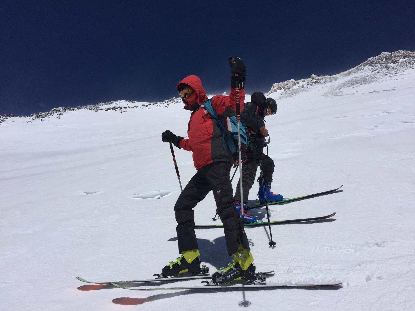 Condizioni strepitose quest’anno, si potrà fare ancora bene per un mese almeno. Bivacco gelido ma sufficiente per i pochi che eravamo; ci vuole sacco a pelo strong, ma sono comunque disponibili coperte. Noi avevamo il cuoco Ali per il ns gruppo e per i 4 russi. Cibo e acqua calda sempre pronti e preparati al momento, quindi ne è valsa la spesa esigua. La neve oltre i 4500mt era ben dura e ventata, dunque rampant piuttosto utili. Con essi si io ho potuto fare a meno di mettere ramponi, che però possono risultare comodi per la primissima parte di discesa, laddove non volendo incartarsi con gli sci fra le pietre, si rischia di allungarsi sulla neve ghiacciata sotto la vetta.