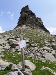 Si svolta a sinistra seguendo l’indicazione per il Col di Fea e cercando di seguire le rade tracce e gli altrettanto radi segni rossi. Si prosegue indicativamente sempre in direzione Sud-Ovest guadando alcuni piccoli torrentelli (problematici in seguito a piogge o forte innevamento) fino a raggiungere un tratto di pochi metri attrezzato con catena e che permette di superare una balza rocciosa.