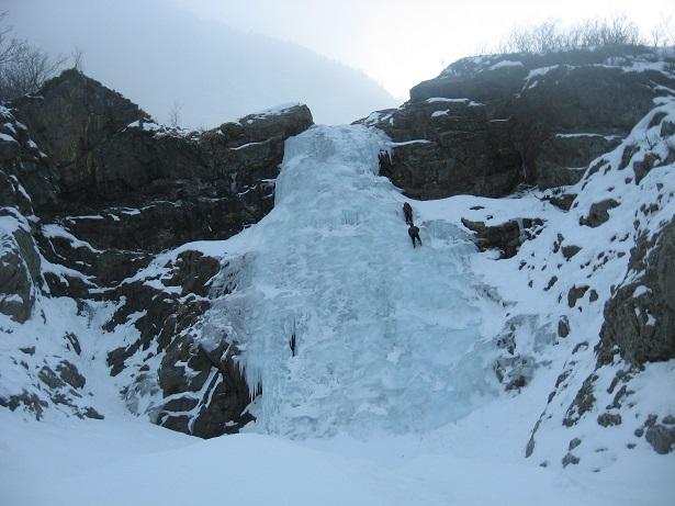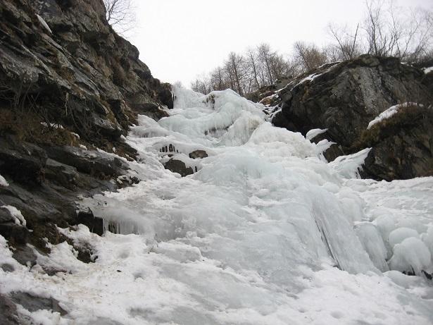Bella bella…primo salto fatto in 3 tiri…primo muro sosta a sx cordone marcissimo! Integrata con chiodo da ghiaccio..dopo il terzo tiro abbiamo continuato per un saltino con il caldo ormai al limite e bella goulotte…60m…..canale….altra bella goulotte..60m…c’é ancora un bel muro al fondo ( fatto da una cordata davanti a noi)…discesa a piedi per sentiero sulla dx…ottima traccia sia in salita che discesa…i tiri alti meritano il giro..molto bello l’ambiente…è un peccato fermarsi sotto 😉