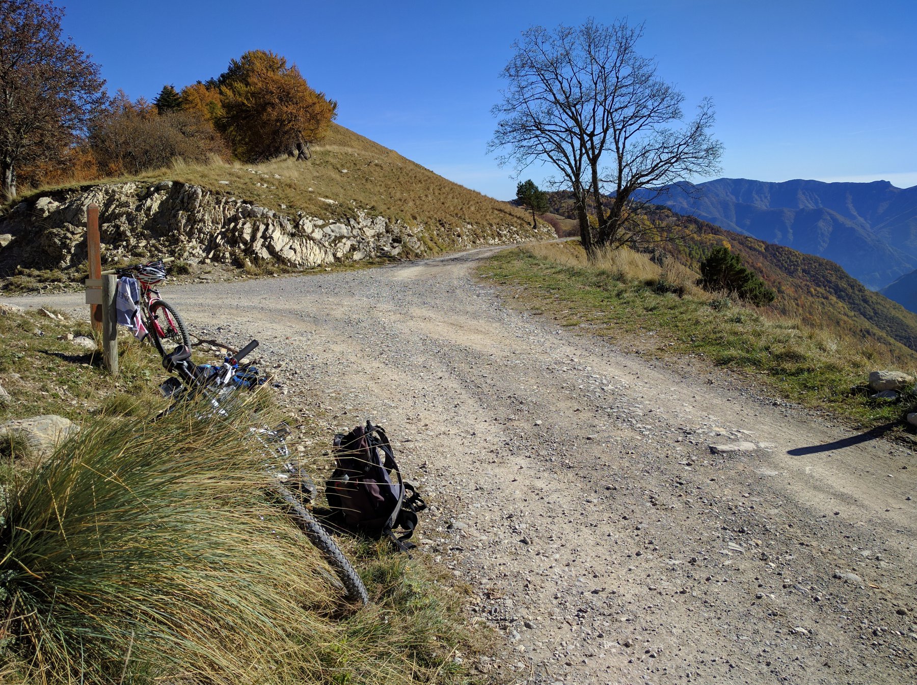Un bellissimo single track tutto ciclabile che con un taglio a mezzacosta in discesa vi porta alle vecchie fortificazioni del Colle e successivamente sulla strada asfaltata.