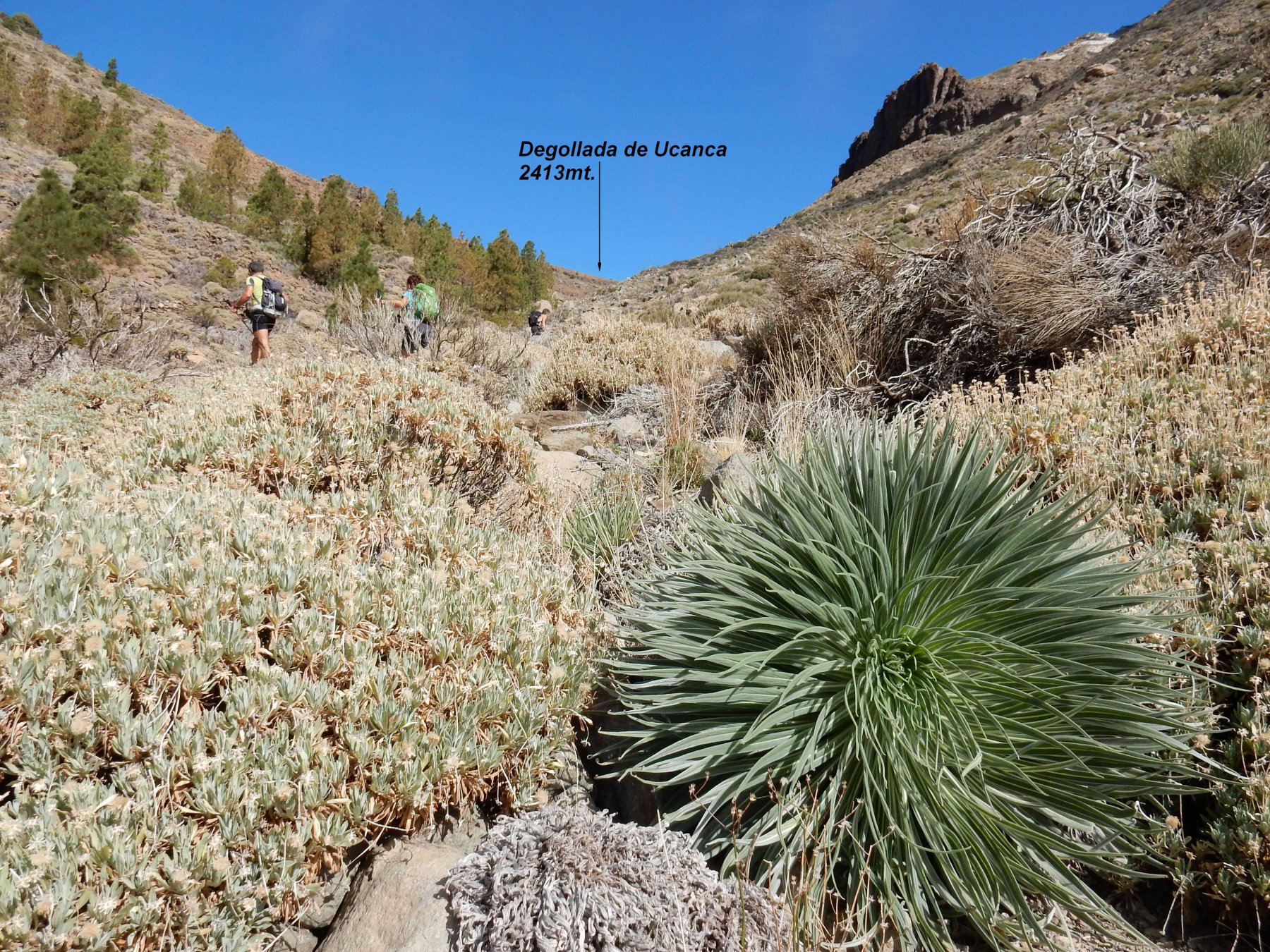 Parcheggiato la macchina ai bordi della strada prendere le indicazioni poste su un cartello e salire il bel sentiero che sale tra piante di pino canario e rocce colorate stratificate. A circa 1950mt. prendere la deviazione a sx per la Degollada de Ucanca e salire alla panoramica forcella. Al ritorno possibilità di visitare il Paesaje Lunar con una deviazione.