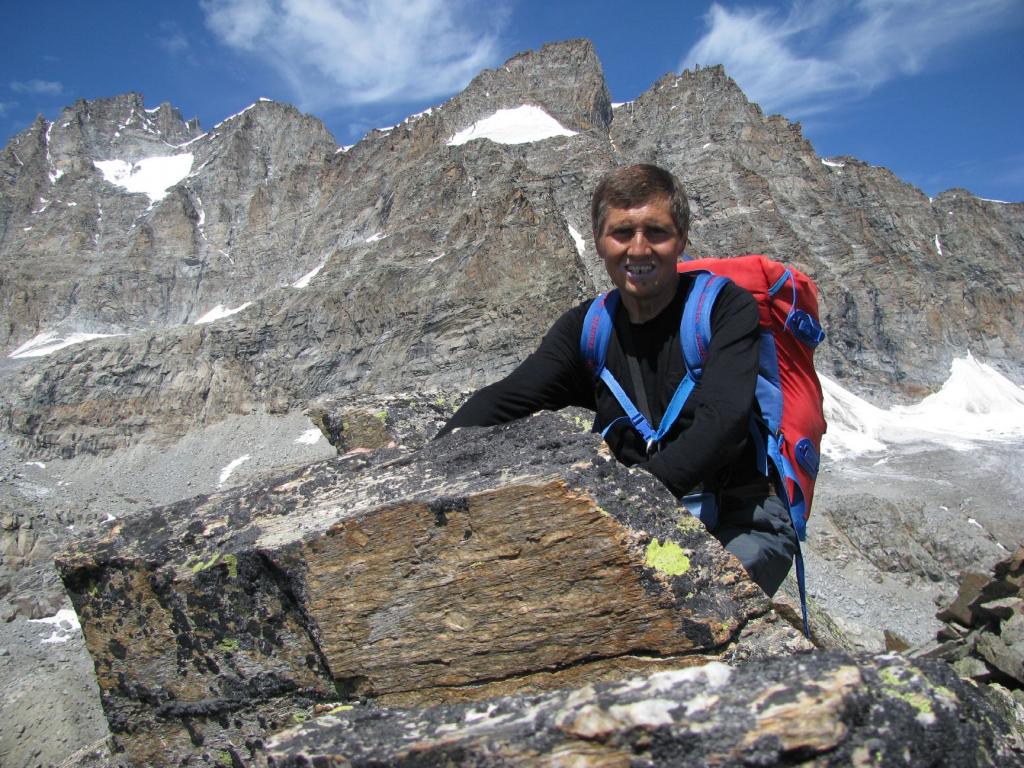 Gita solitaria esplorativa nell’alto Vallone di Noaschetta, ambiente molto selvaggio e severo nel primo tratto fino al bivio della Bocchetta del Ges, poi si apre alla vista lo spettacolare versante sud-est del Gran Paradiso ed in primo piano il bellissimo pianoro dell’Alpe Bruna di sotto e di sopra (Broìna, in dialetto noaschino). Raggiunto il pianoro di Goi, una mandria di mucche presenti all’inizio del piano, mi ha seguito in salita per qualche centinaio di metri, poi si è fermata a brucare l’erba ed al ritorno l’ho trovata all’Alpe Motta ( La Mutta in dialetto noaschino). Discreta traccia di ometti, in parte crollati per azione della neve e da me ricostruiti, fino al valloncello adducente al piccolo ghiacciaio. Salita alla cima un po’ ravanosa causa una certa instabilità del pietrame su cui avviene il percorso, però la fatica viene premiata dal grande panorama che si può ammirare dalla vetta. La bella e calda giornata ha fatto sciogliere tanta neve e ghiaccio tanto che all’Alpe Bruna di sopra, per superarlo, nonostante l’abbia attraversato a monte a circa metà piano dove è diviso in diversi rivoli, ho fatto involontariamente il pediluvio nel ramo principale