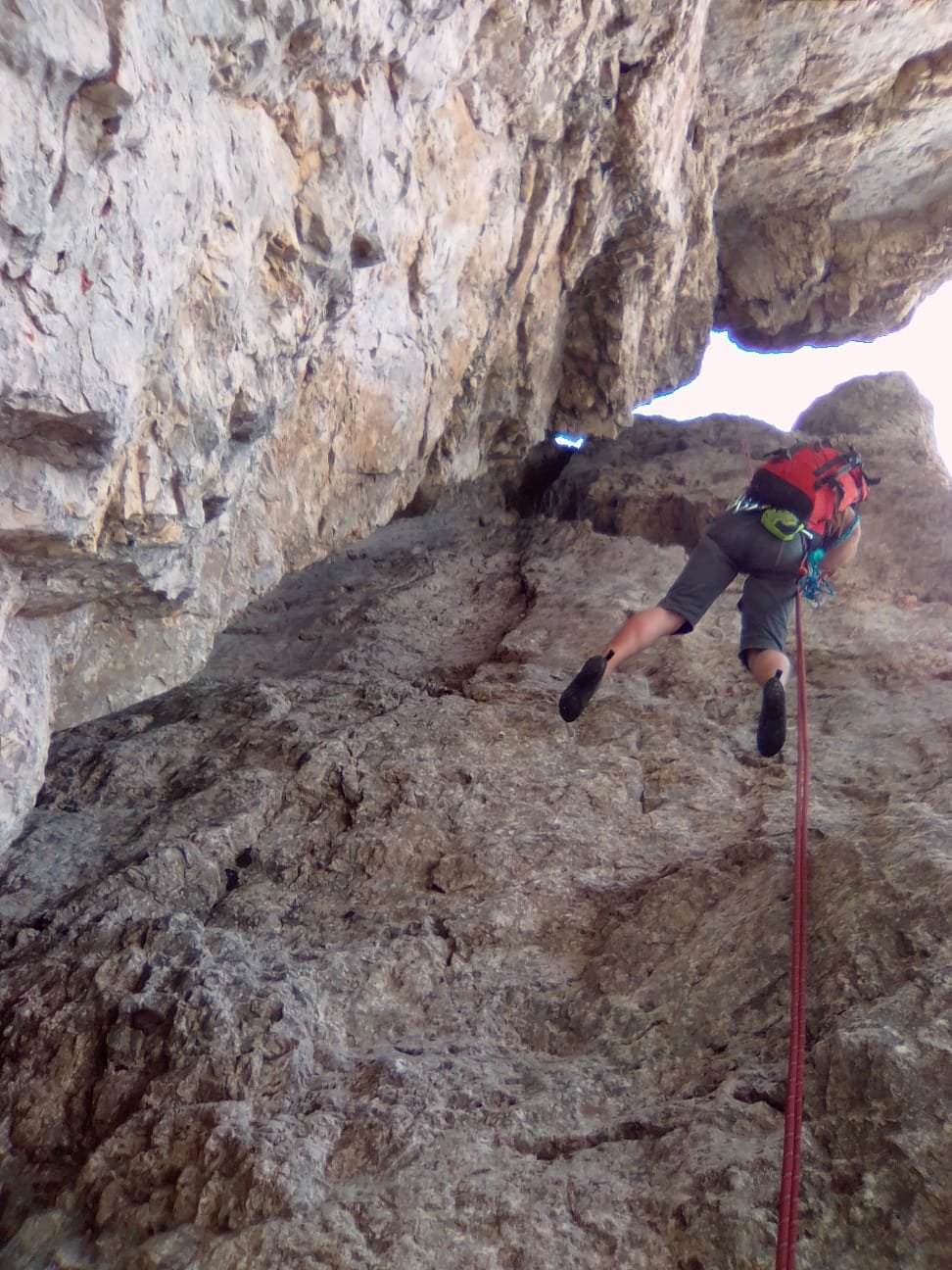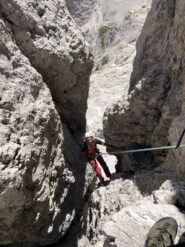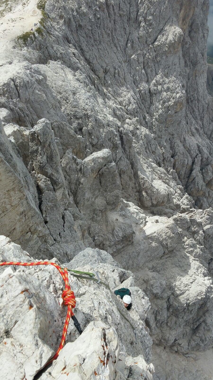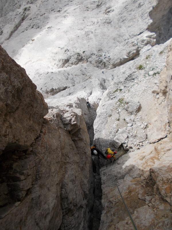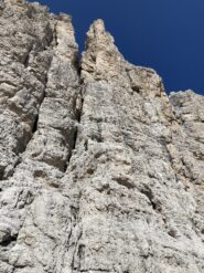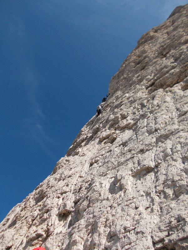 Dopo il blocco incastrato fra la torre Delago e la Stabeler, gli ancoraggi si trovano sulla parete di quest’ultima.