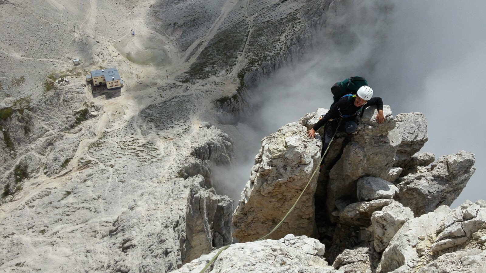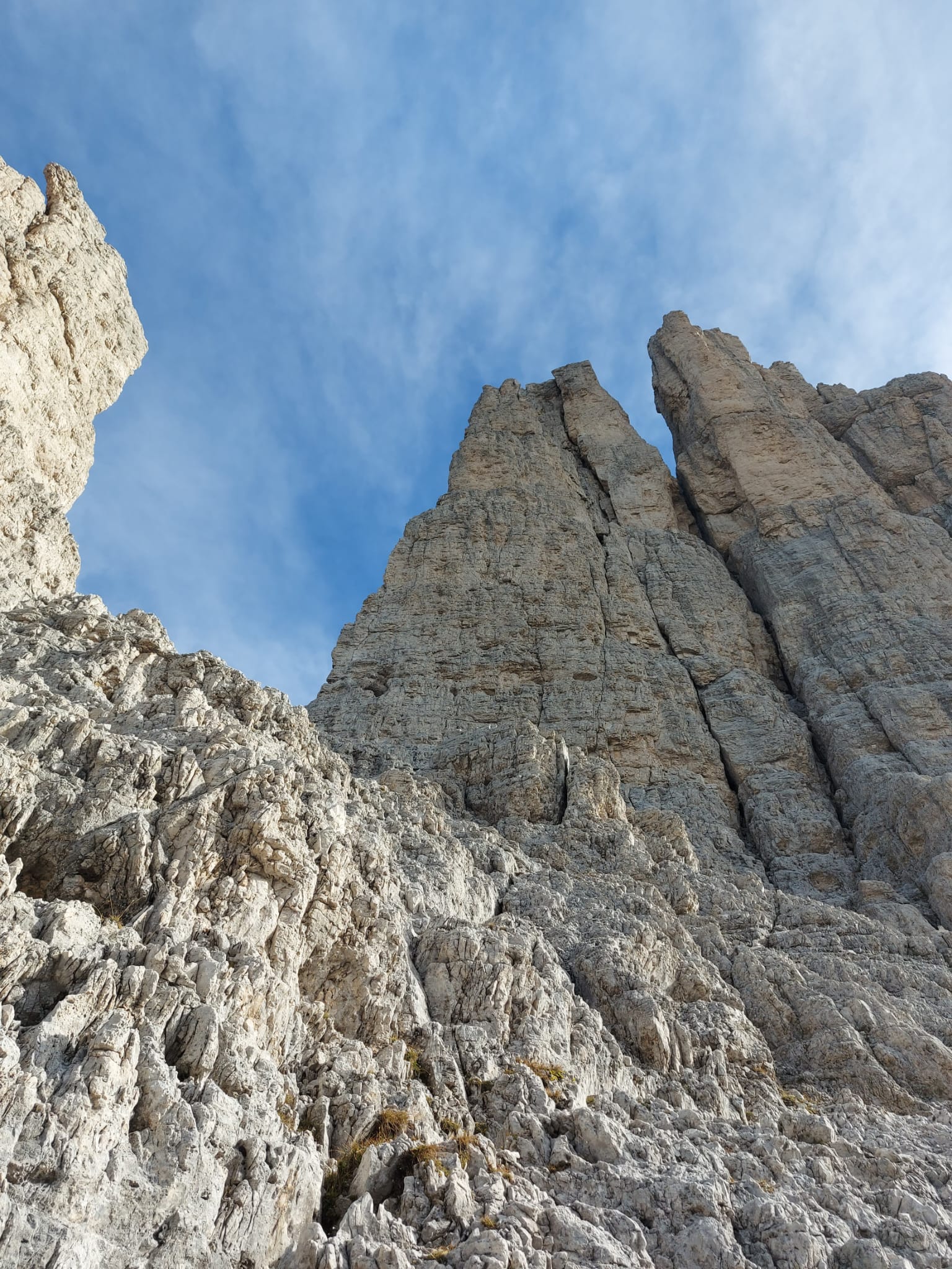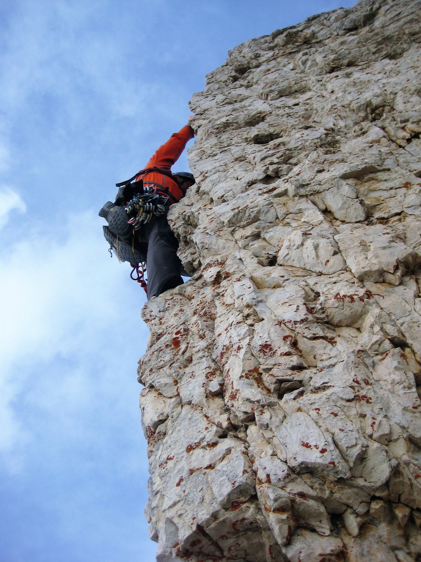 Dopo il blocco incastrato fra la torre Delago e la Stabeler, gli ancoraggi si trovano sulla parete di quest’ultima.