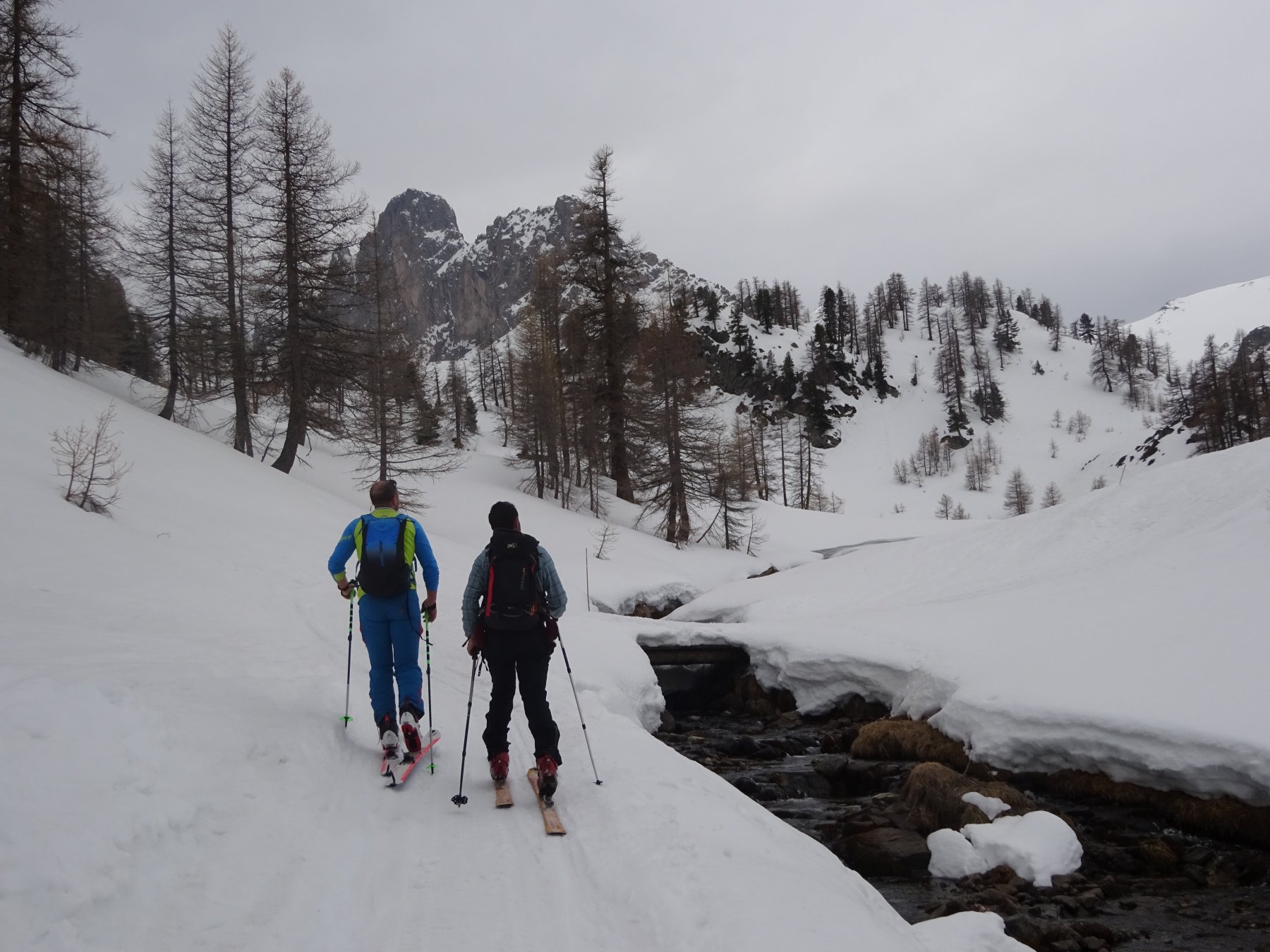 Con strada chiusa a Nevache si segue il tracciato della strada che percorre la sinistra orografica della Val Clarèe (pista sci di fondo in inverno) fino a giungere a Fontcouverte all’Auberge de la Fruitiere 1857 m.