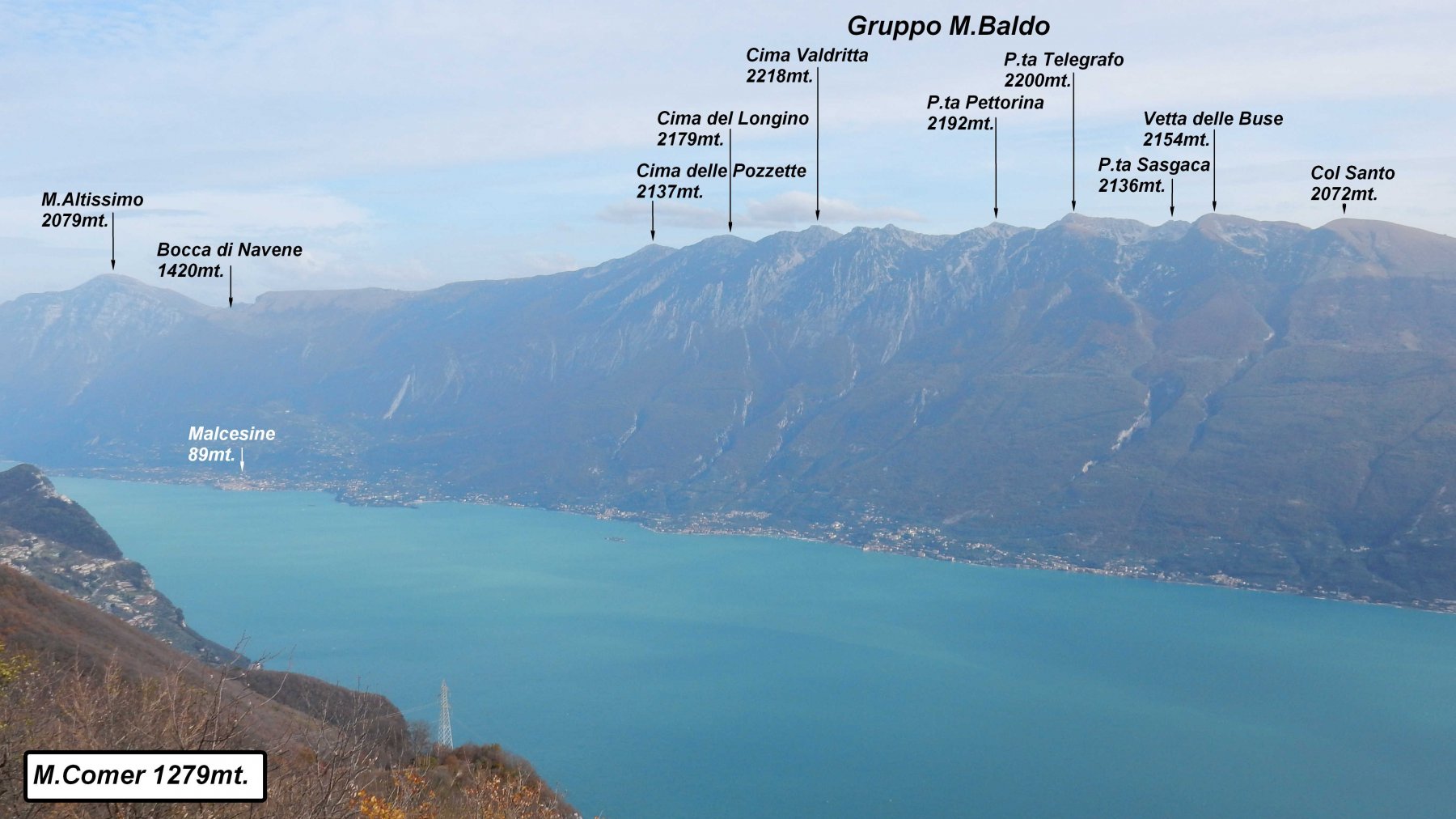 Baldo (Monte), Punta Telegrafo e Cima Valdritta da Castello di Brenzone