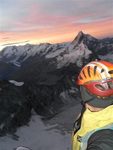 …tra le varie ottime condizioni trovate ne è uscita una delle mie salite più belle mai fatte con un’alba mozzafiato e con la costante super visione dei vari colossi in particolare Cervino e Dent d’Hérens.
