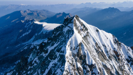 Via molto impegnativa fisicamente sopratutto per la discesa, come spesso accade: si sentono molto tutti i metri di discesa dalla vetta e sopratutto il sentiero di rientro; la discesa dalla vetta per essere veloci richiede tanta esperienza e capacità di disarrampicata su terreno molto esposto, in alternativa ci sono le doppie ma richiedono molto più tempo. Noi abbiamo fatto un misto e abbiamo impiegato più tempo a scendere rispetto a salire. Dal rifugio, una volta rifocillati, discesa davvero interminabile e molto stancante per via delle temperature altissime trovate a valle. Un grande 4000 che allena e mette alla prova l’alpinista non ottimamente allenato. Dal punto di vista dell’arrampicata mai impegnativa, sempre divertente.