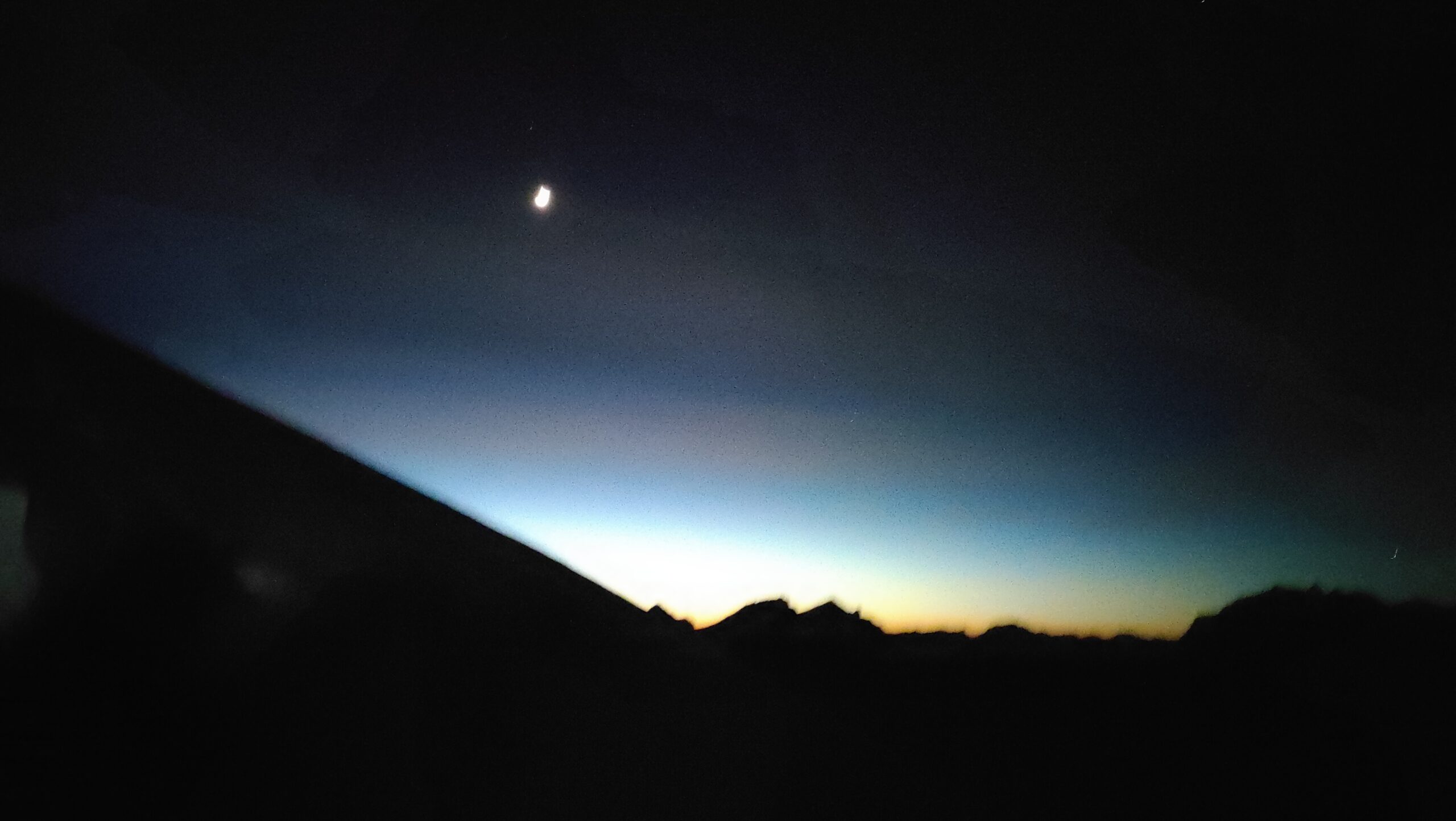 Dal rifugio si attacca la cresta sul teatro scalicchiando un po’,per poi uscire su primo tratto ghiacciaio,ripido al mattino necessari ramponi e crepacciato.
