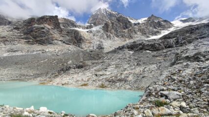 Prestare solo un po’ di attenzione ai crepacci in apertura al ritorno verso il rifugio con la neve smollata.