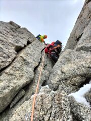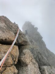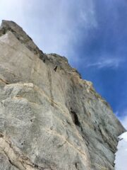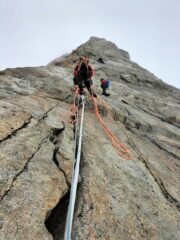 Bella salita, purtroppo il meteo avverso e cordate lente davanti a noi ci hanno fatto perdere un mucchio di tempo…doppie veloci molto aeree sul versante sud,parecchie e tutte a spit.
