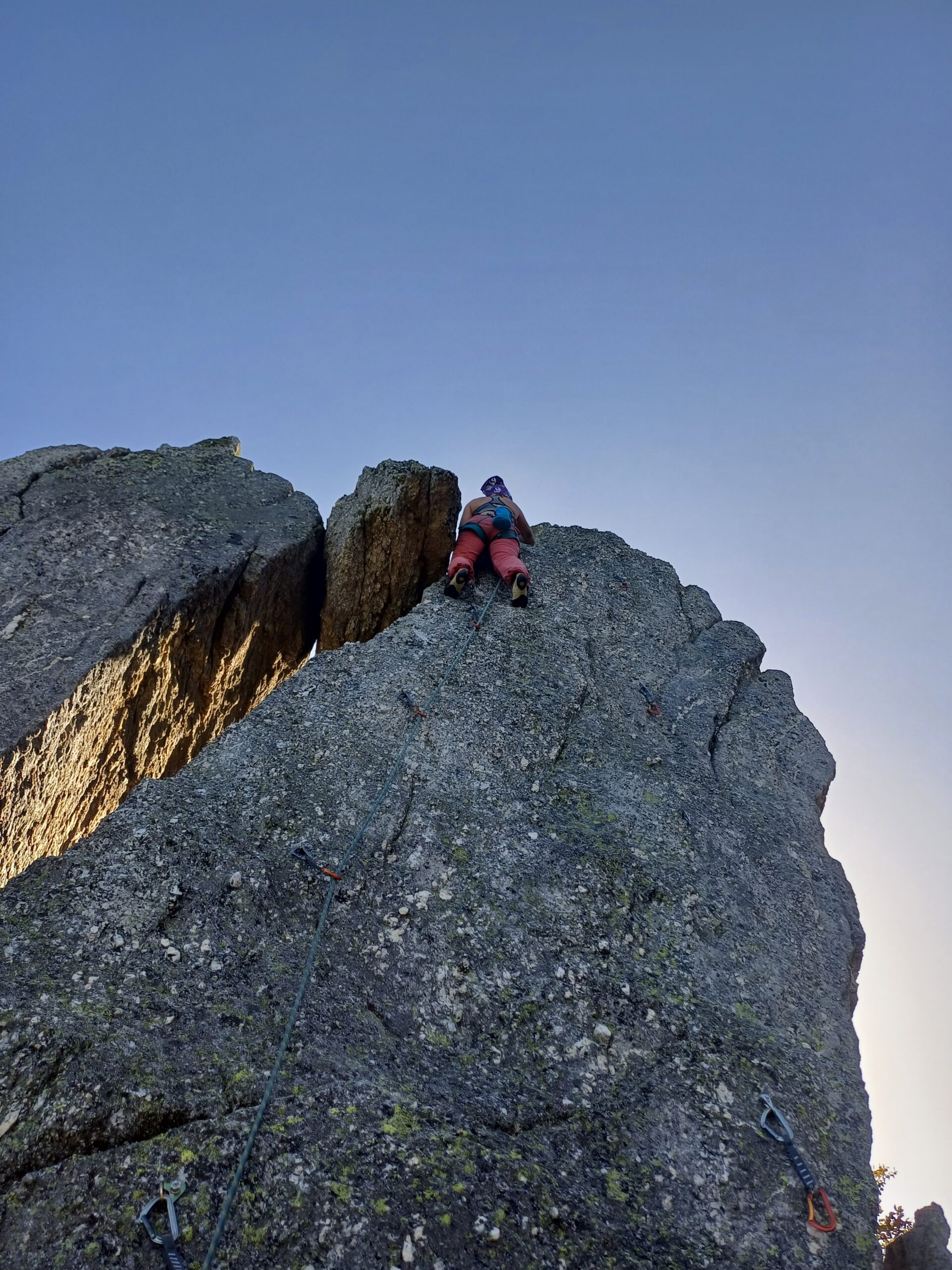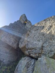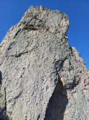 Evidente posta al limite superiore della cresta presenta una particolare roccia a “knobs” simile alle famose pareti di Tuolumne Meadows.