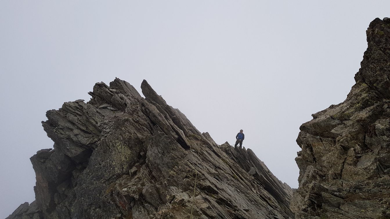 Bellissima linea, pressoché diritta come un fuso, in un contesto selvaggio e panoramico. Roccia superlativa, anche dove, ultimi tre tiri, le lame sembrano instabili…non lo sono!