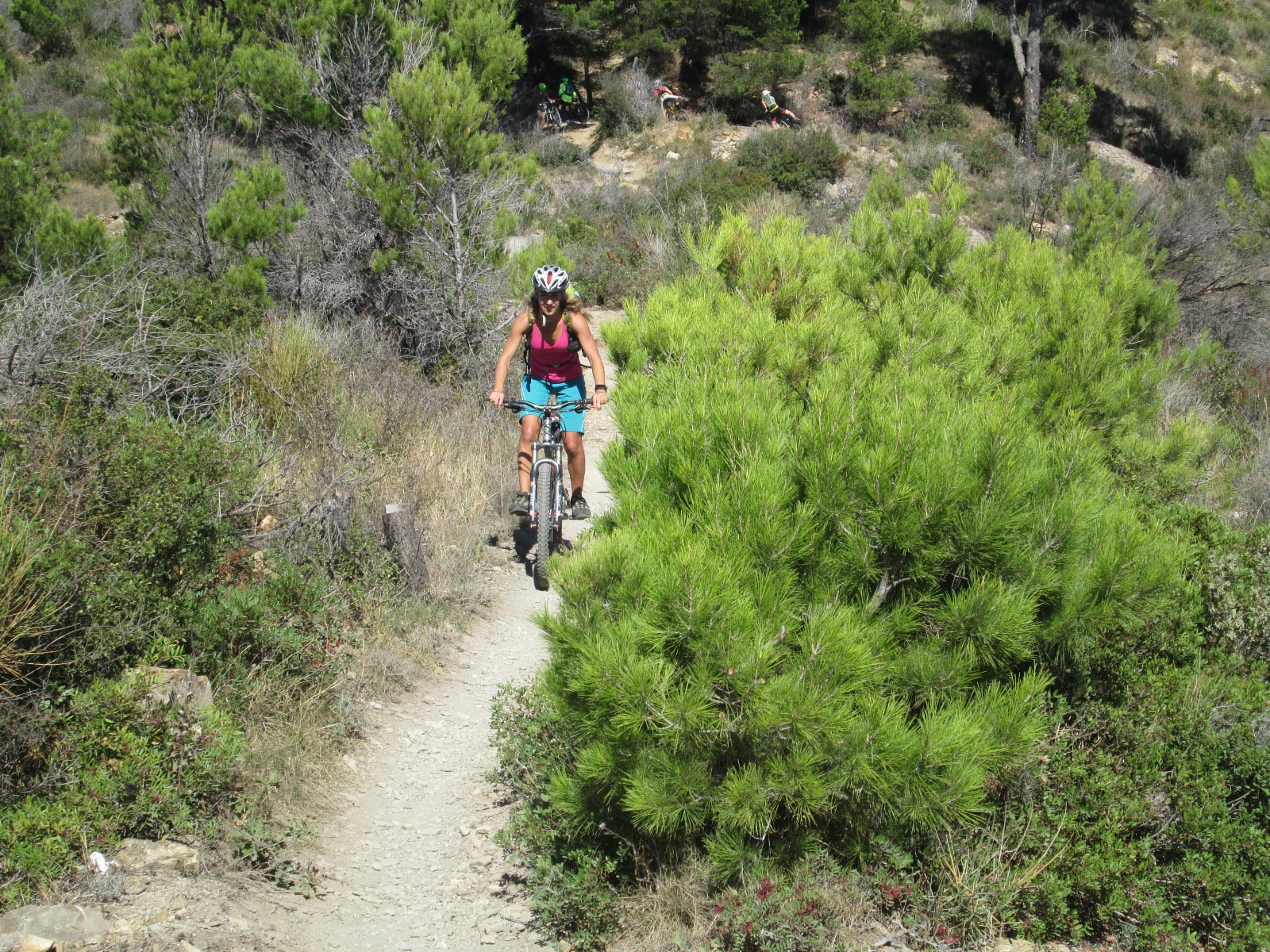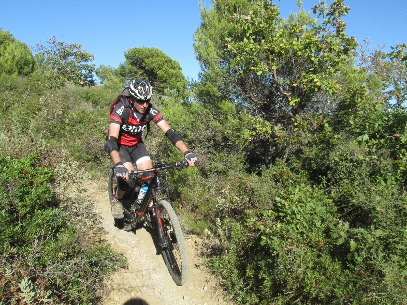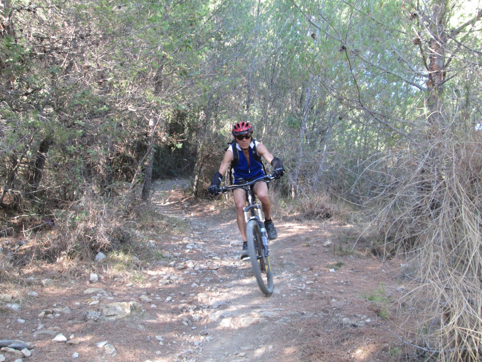 Si scende su quello più a destra (soprannominato “I Maiali”), molto bello e non particolarmente impegnativo, con fondo compatto e poco pietroso e con parecchi salti tutti evitabili. Il sentiero termina su una strada asfaltata, si svolta a destra e con parecchi saliscendi si ritorna sulla strada di salita poco dopo Colla.