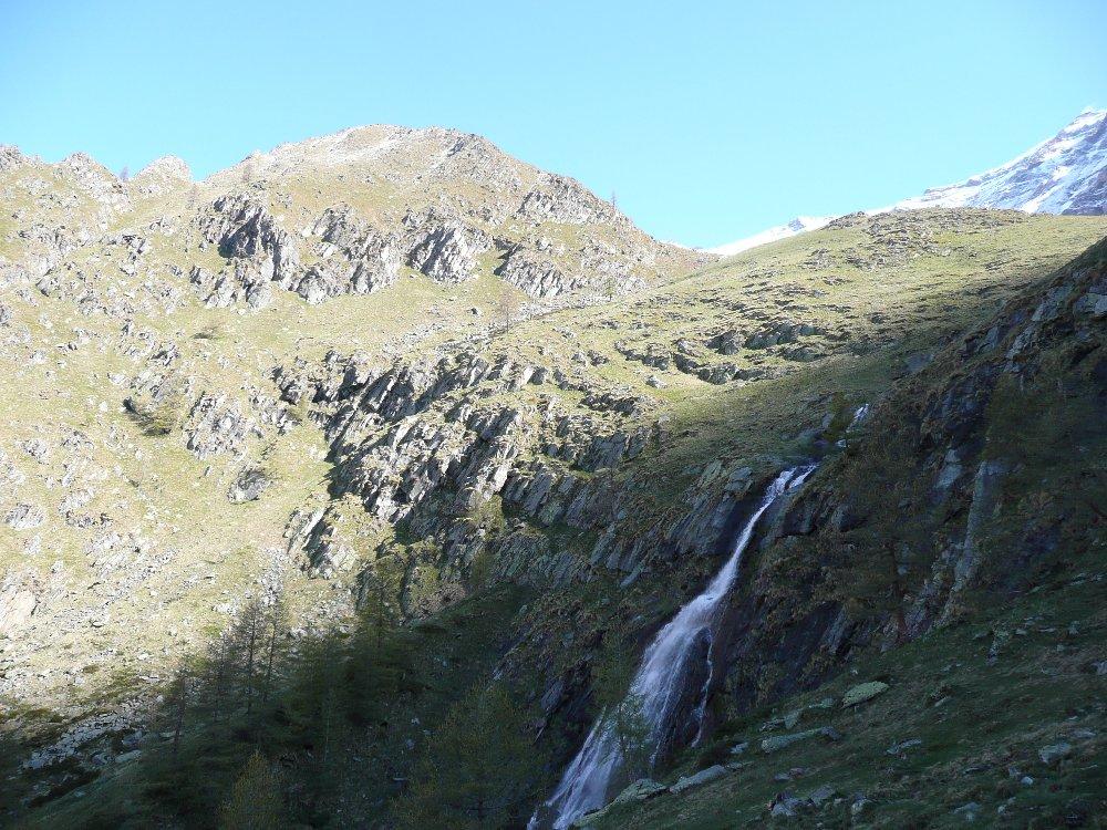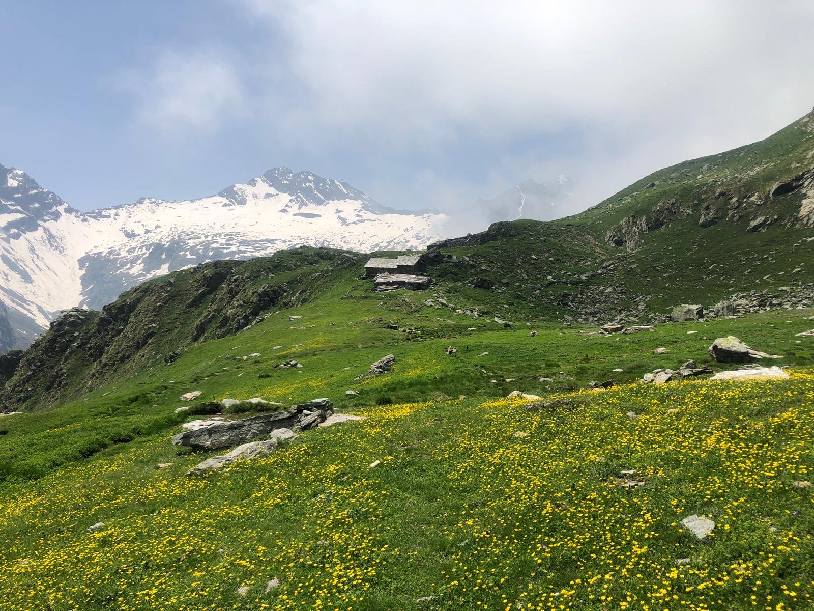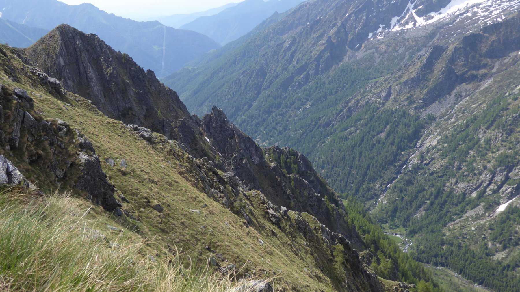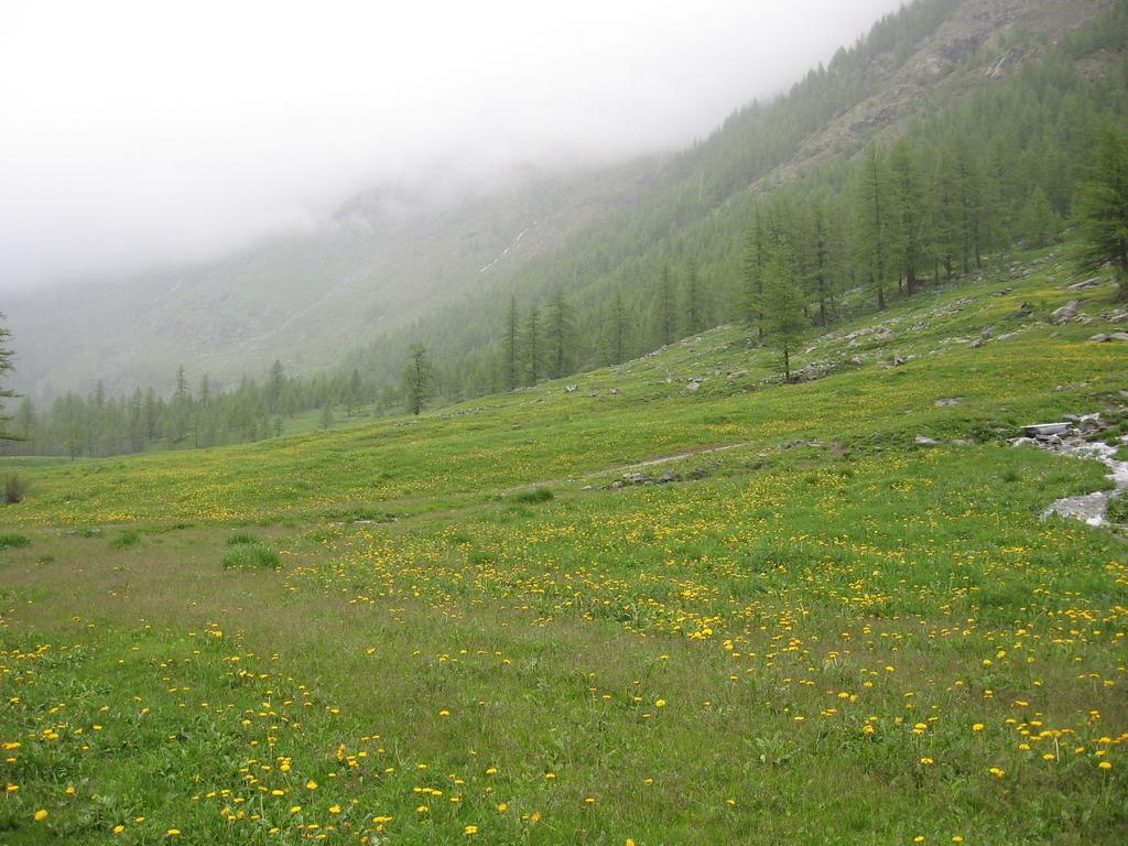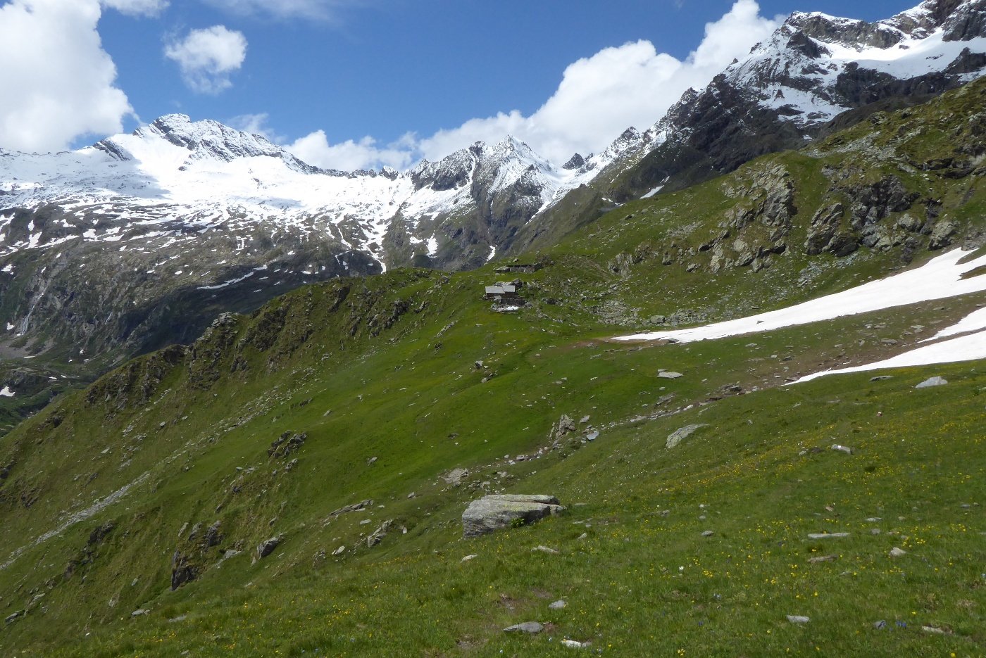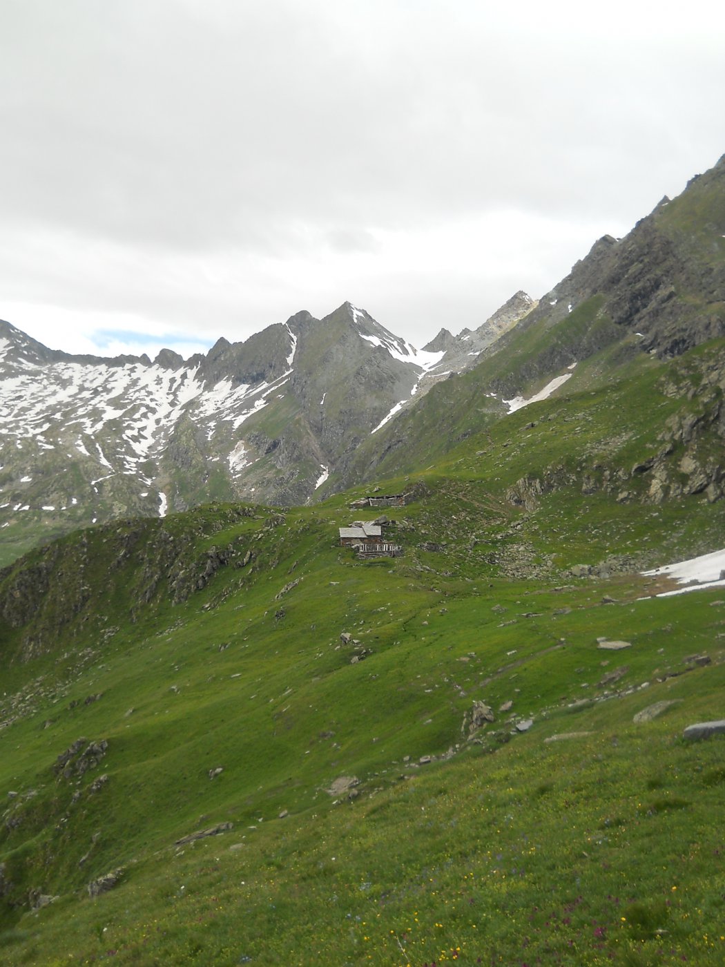 Se invece non si vuol compiere questo giro più lungo, ma solo un mini-anello più breve, si ritorna a San Besso, lasciandolo a destra per proseguire seguendo le indicazioni del sentiero 628 che scende nel selvaggio vallone a sinistra sotto la Punta dell’Orletto; rapidamente si perde quota seguendo il corso del Rio Fanton, che poi resta a sinistra. A quota 1630 m si arriva a Pugnon, dove si può sia andare a destra per giungere al bivio del sentiero 625 lungo la strada di Pian d’Azaria, oppure meglio ancora proseguire sulla traccia principale che continua a scendere ripida per prati toccando alcuni ruderi e poi un pilone votivo. Si scende ancora fino ad un prato che precede un bell’alpeggio, qui si segue la traccia a destra (non indicata ma evidente) che in breve porterà direttamente al ponticello appena dopo il parcheggio. Se invece si continua sul sentiero 628 fino al termine, si arriva al centro di Campiglia, quindi poche centinaia di metri in risalita e si torna all’auto.