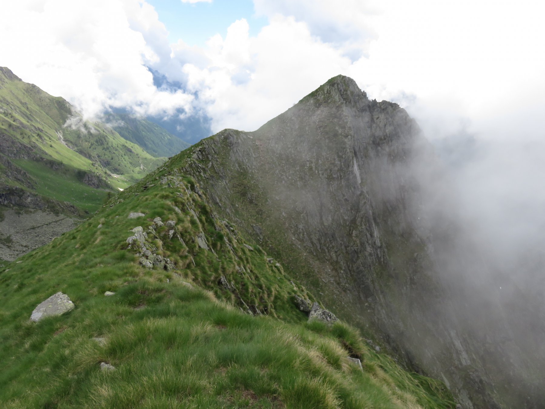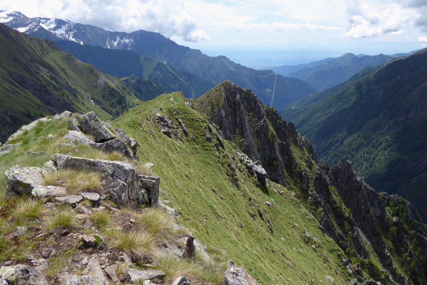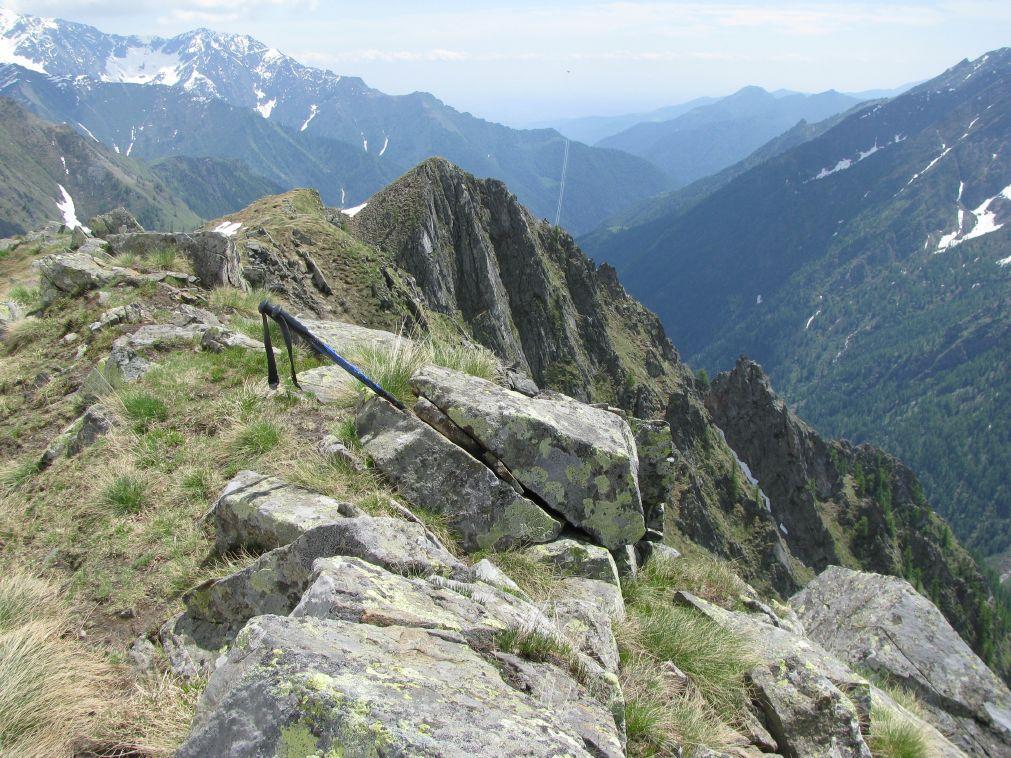 Con dolci avvallamenti si segue il vallone superando l’Alpe della Balma 2147 m e con ampio semicerchio da destra a sinistra si arriva al Colle Balma Arietta 2335 m. Da qui si prosegue per vaghe tracce sul costone di rocce ed erba verso sud (sinistra) mantenendosi sempre sul versante di San Besso (attenzione in caso di neve) toccando la quota 2341 m, punto più alto del crinale che culmina in fondo con il Monte del Diavolo. Si segue il facile crinale prevalentemente erboso perdendo quota sino ad una selletta proprio sotto il Monte del Diavolo, che si sale senza problemi su zolle erbose 2308 m. In autunno attenzione all’erba olina !