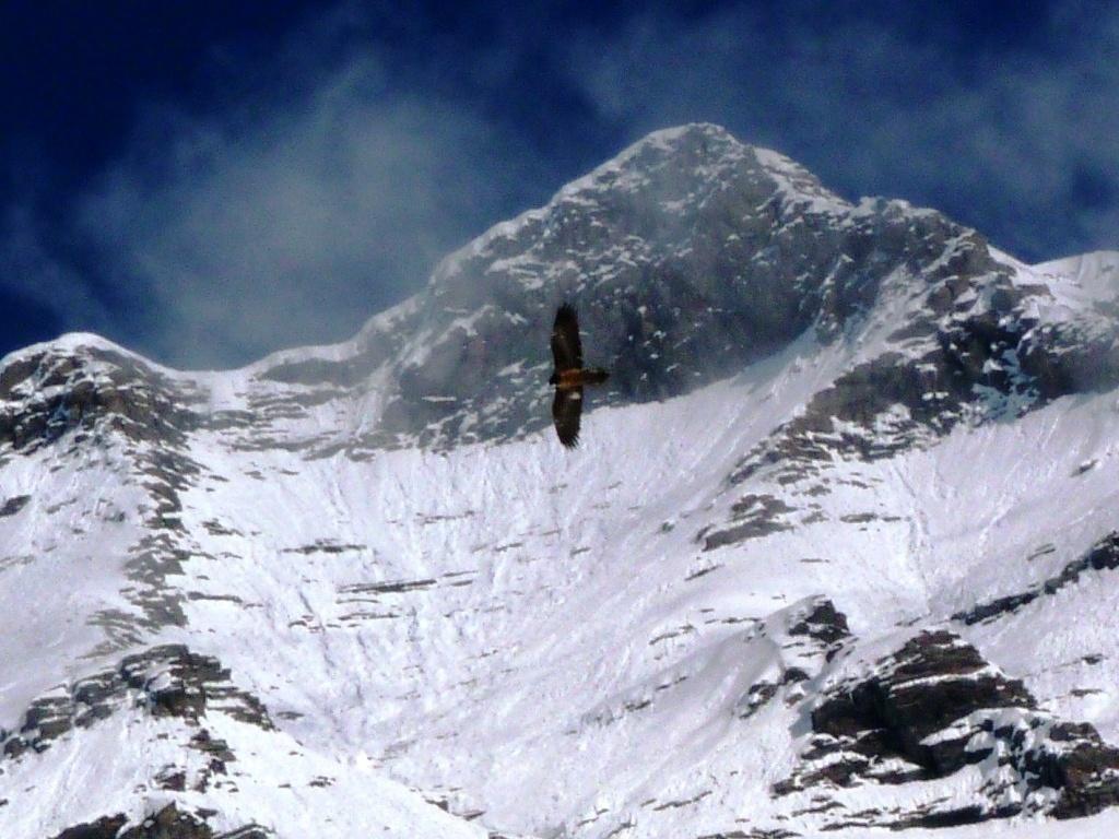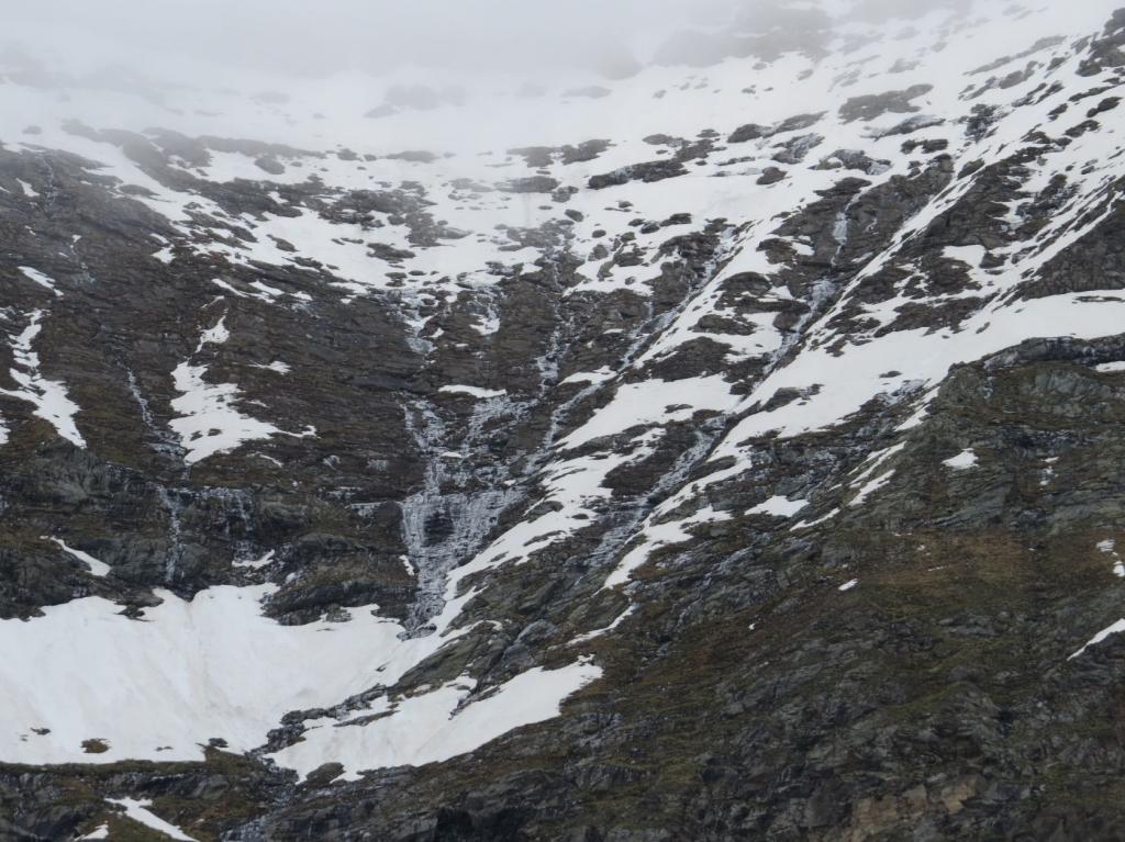 In primavera è facile trovare ancora i canaloni pieni di neve, vista la ripidezza della parte superirore.