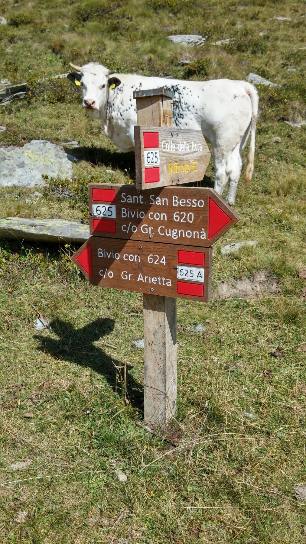 Da San Besso 2019 m (da cui volendo si sale in pochi istanti sul sovrastante Monte Fantono 2072 m) si prosegue in direzione nord, seguendo il corso del vallone sotto la Rosa dei Banchi, sempre sul segnavia 625.