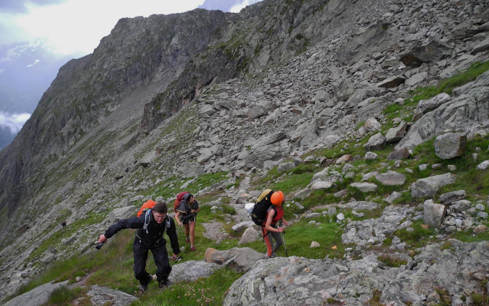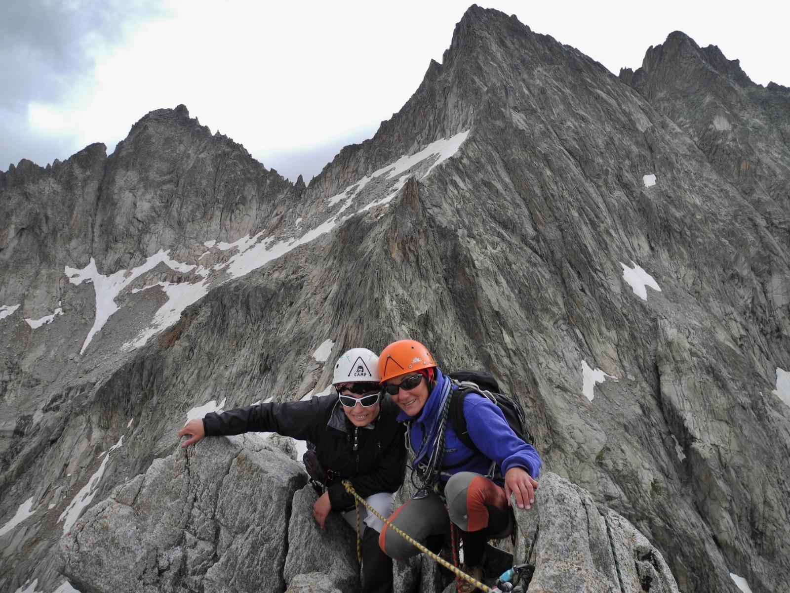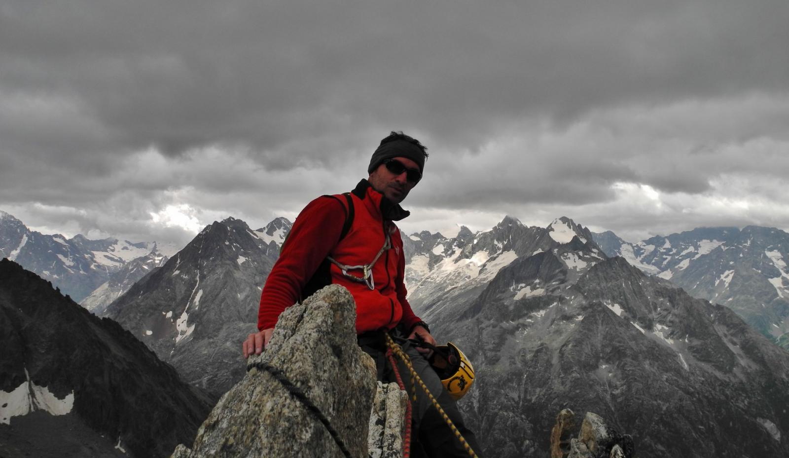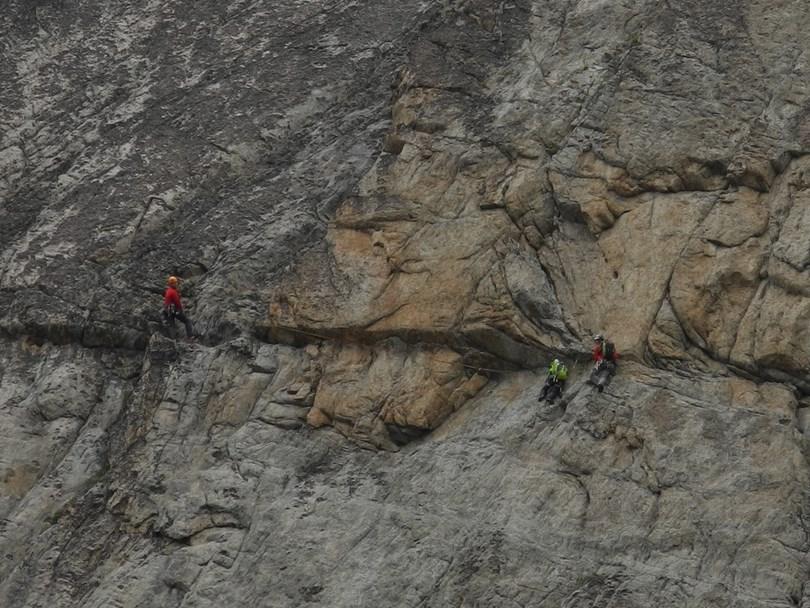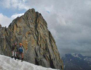 come non annunciato da meteo-france il grand-beaux si trasforma in pioggerella; saliamo da les etages con isa,ste ed enrico almeno per “vederla”…e magari ci scappa almeno la normale.Al rifugio ci sono oltre 50 persone che scalpitano..ci avviamo sulla normale con mark ed isa senza troppi patemi visto che alle cinque dobbiamo essere alle auto; qualche peripezia per evitare i nevai sulle placche ancora fradicie della normale…ma siamo comunque contenti di raggiungere la cima con isa lei per prima volta in assoluto e noi per la prima volta dalla normale..alle tre lasciamo di nuovo il rifugio per scendere a valle, quando un po’ di cordate si sono sparpagliate sulla parete coi primi rari bagliori di sole..Un caro saluto con gli occhi a Fabio,Luca ed Elisa impegnati sul traverso dei Savoyards ed al simpatico “stegio” e amici conosciuti al rifugio..