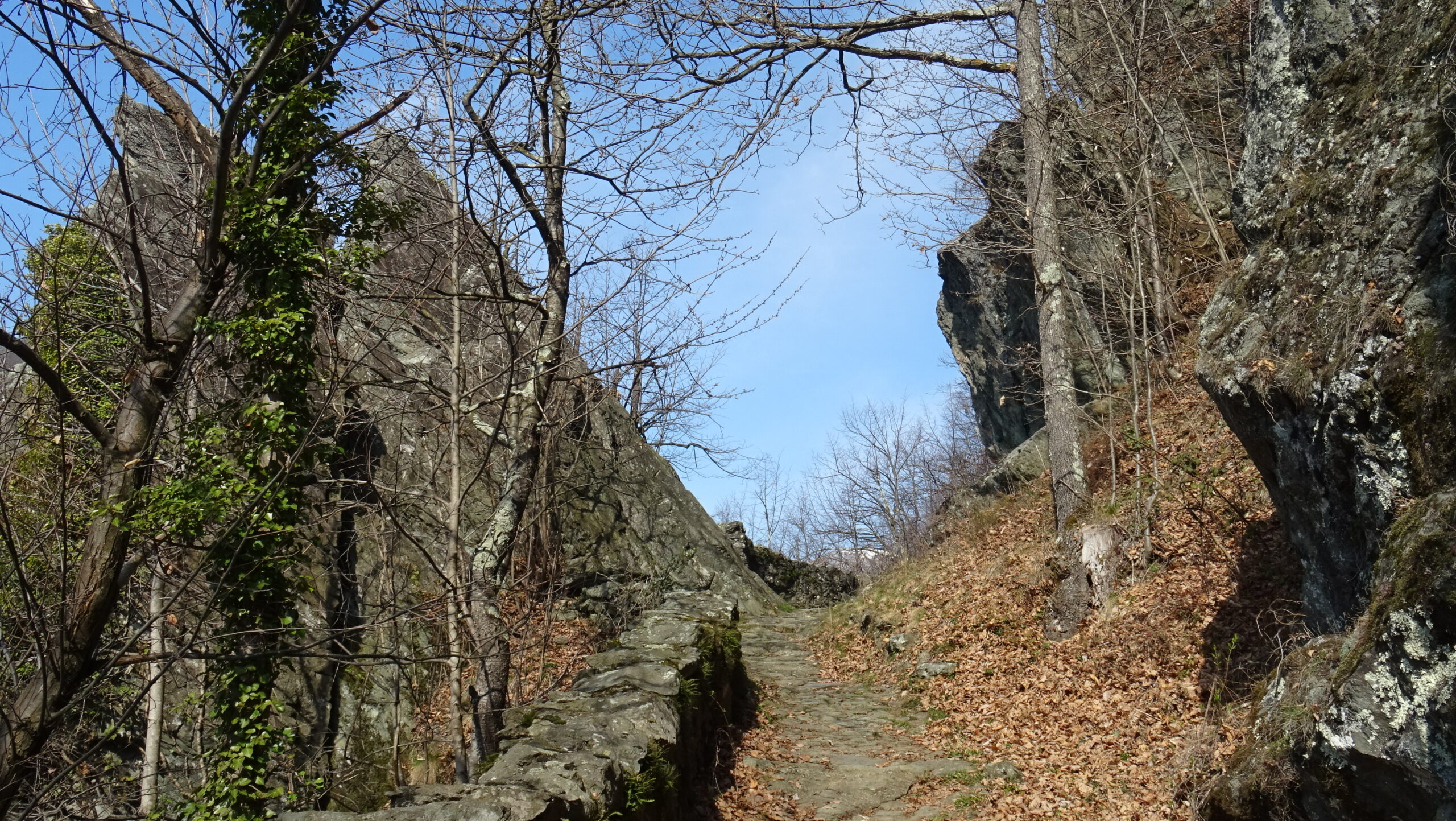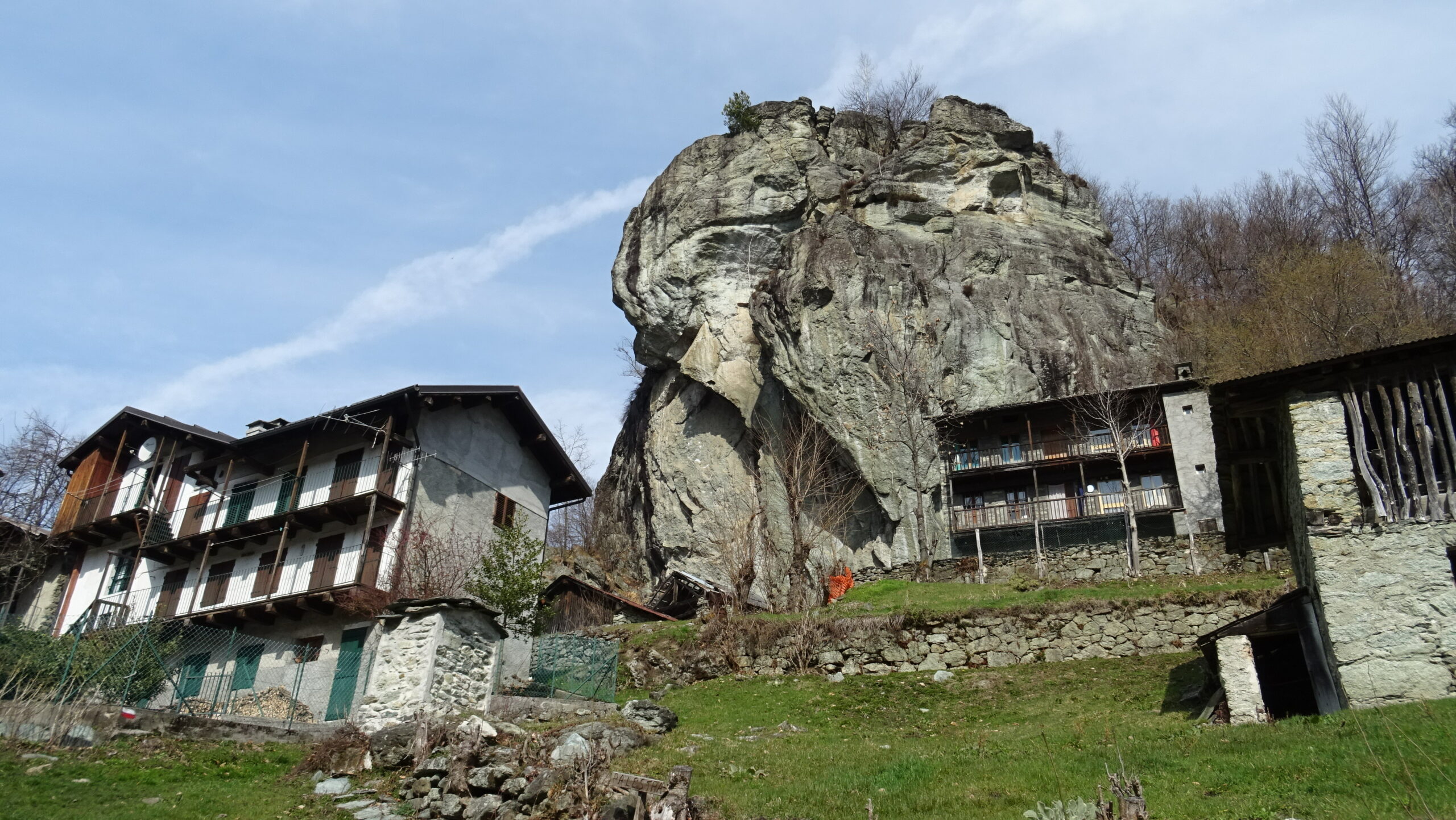 Superato un bel pilone votivo del 1887, e poco dopo uno del 1922, si giunge al primo dei caratteristici ponti in pietra a schiena d’asino, quello sul rio Tontera. Dopo poco si trova un bivio con pilone in cui a sinistra si prosegue per i Tornetti e a destra si sale alla borgata Cramoletti Inferiore. Si prosegue diritti, si percorre un tratto rilevato in pietra e si incontra il ponte in pietra sul rio Viana, detto delle Balmasse. Da qui si giunge in breve alla borgata Balma con le sue pareti di arrampicata. Si piega a destra di nuovo nel bosco e si percorre l’ultimo tratto del sentiero, sbucando sulla piazza dei Tornetti, borgata che merita una visita.