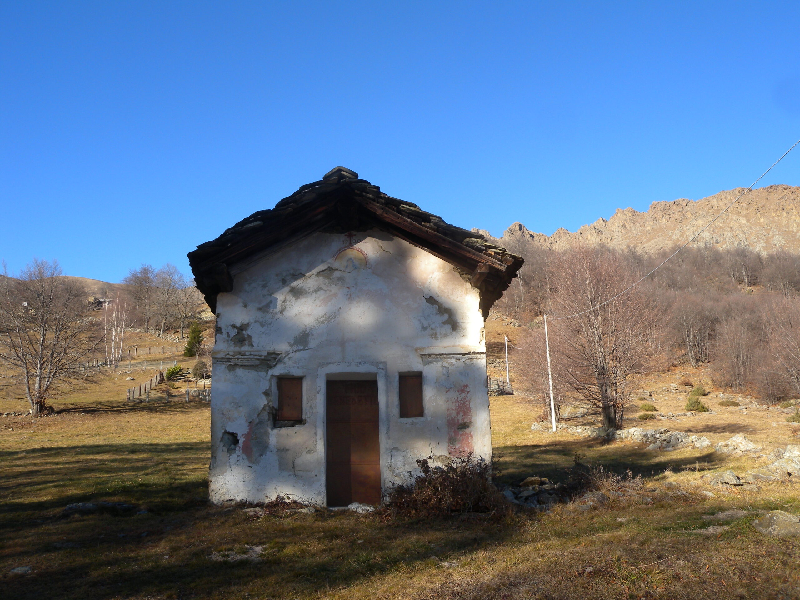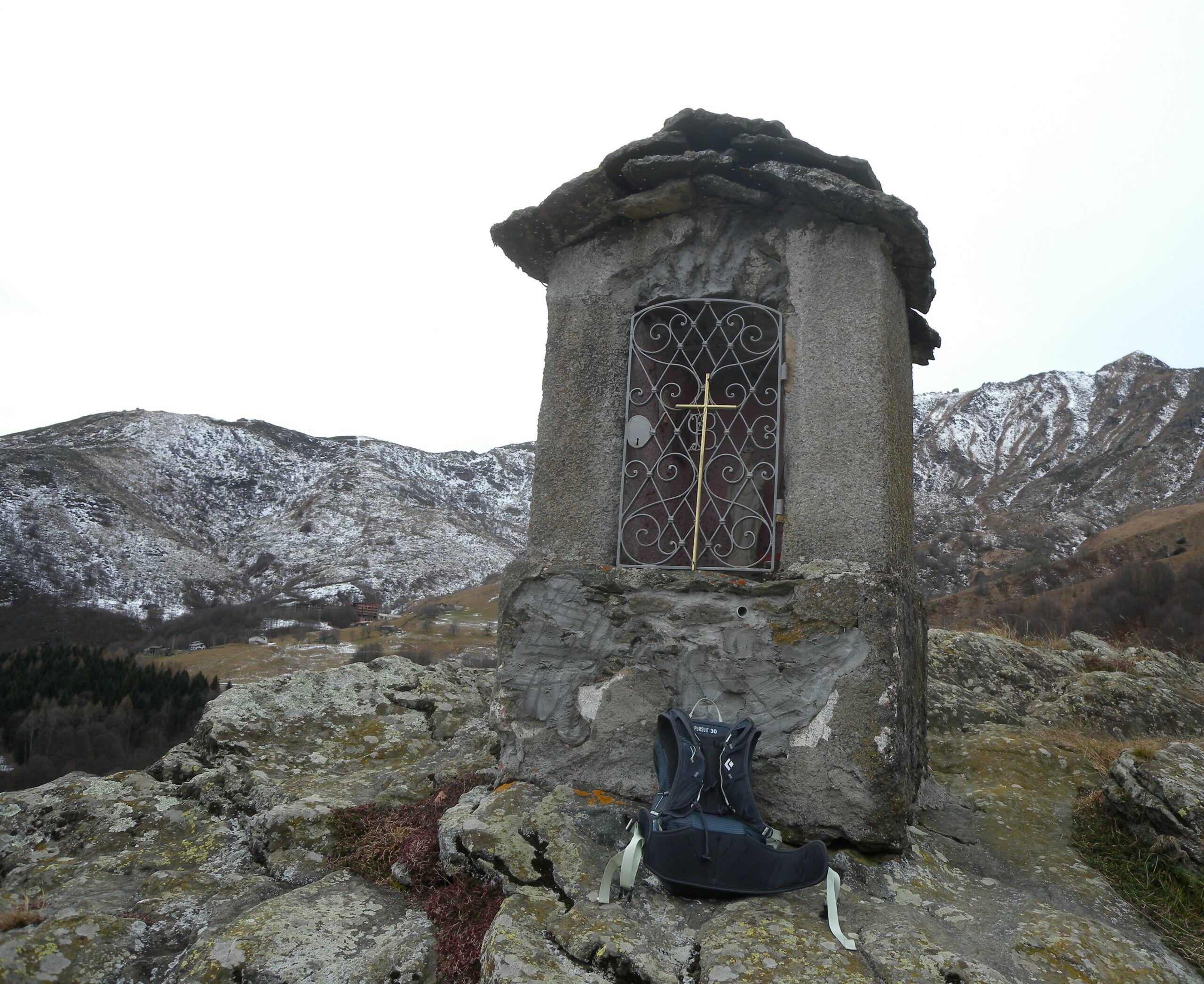 Per la discesa occorre puntare sulla panchina gigante, assurda e inutile installazione frutto dell’insana passione dell’uomo per alterare i paesaggi naturali, e scendere sul discreto sentiero fino alla strada per Mezzenile, anche questa opera di molto dubbia utilità. Si piega a destra per pochi metri , incontrando sulla sinistra (cartello) un bel sentiero diretto verso l’Uja di Calcante. Lo si percorre nella faggeta, con qualche piccolo saliscendi, mantenendo più o meno sempre la dorsale, e si raggiunge in poco tempo il colle della Cialmetta con la sua caratteristica chiesetta.