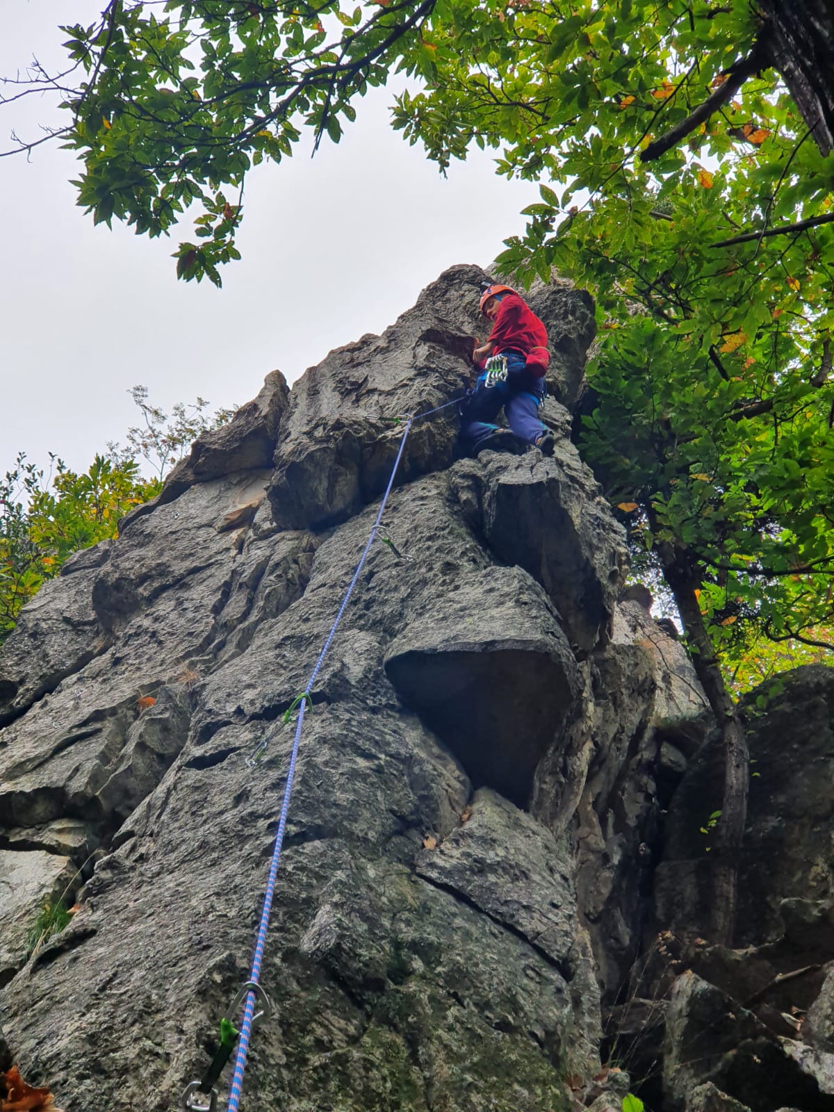 Molti tiri facili, ideali per chi vuole iniziare ad arrampicare da primo. Consigliata!