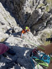 Dalla cima singola calata da 60 m sulla via Rizieri ci riporta alla base.
