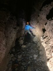 Dall’ingresso inghiottitoio si segue un cunicolo angusto ingombro di legna e detriti delle piene, seguito poi da saltini e altri cunicoli. Alcuni pozzetti su corda portano dopo 250 metri al “Pozzo della grande marmitta” (P20) . Da qui iniziano gallerie con marmitte e scallops percorse dal primo corso d’acqua. Si raggiunge una zona di frana (Tana del lupo), dove occorre trovare i passaggi. Si ode il rumore di un torrente al di là dei massi. Siamo alla confluenza proveniente da destra, “Salone Gianmichele” e “Salone delle stelle”. Proseguendo sull’attivo si raggiunge la grande galleria “Pelagalli”, e dopo breve a sinistra troviamo l’arrivo di un terzo torrente proveniente dalle grotte di “Sa Funga e s’abba” e “Mammucone”, che presto chiude su sifone. Proseguendo diritto lungo un incredibile cunicolo/fessura allagato si raggiunge la “Grande frana” di oltre 400 metri. Oltre questo complicato passaggio la grotta inizia a sifonare per sette volte. Le esplorazioni subacquee sono ferme al settimo sifone. Sviluppo spaziale attuale di circa 13 chilometri, con la giunzione di Sa funga e s’abba.