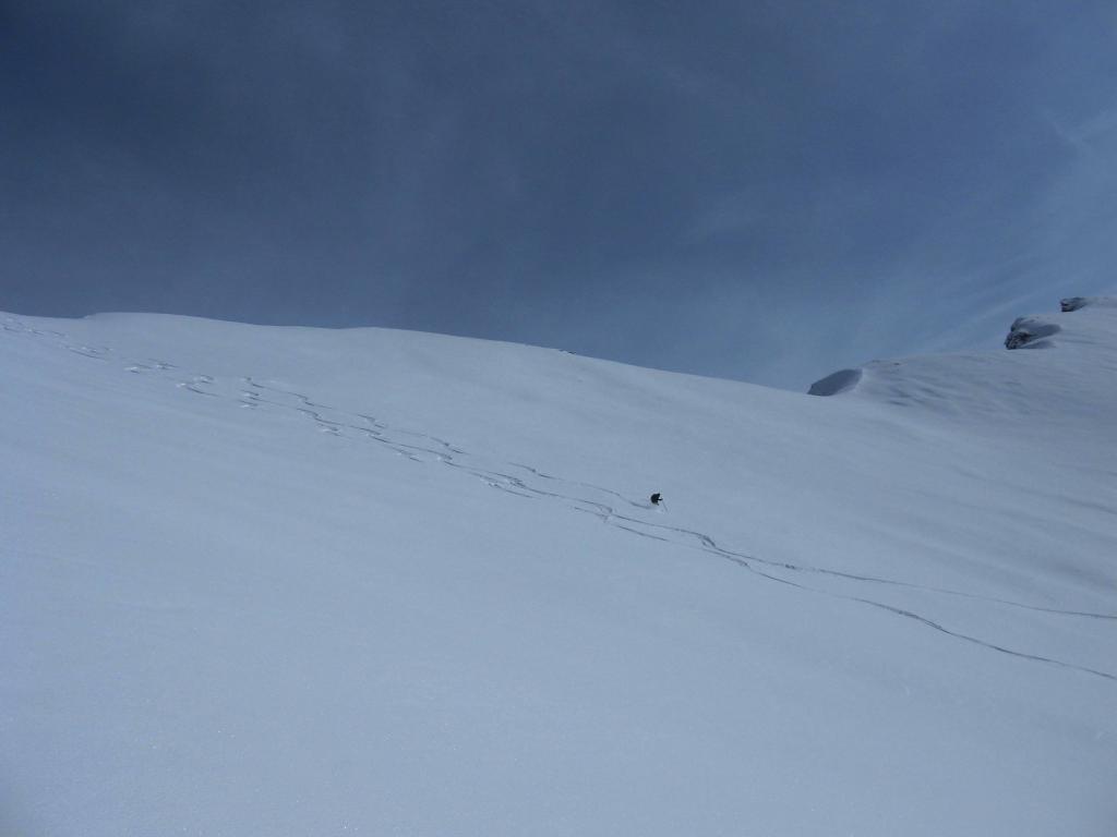 Gita caratterizzata dal freddo intenso, -18 a Thures alla partenza e non ha mollato lungo tutto il percorso, solo in punta il sole ci ha concesso una piacevole sosta. Discesa nel complesso molto bella, nella prima parte da 5* su ottima farina, da Grange Chabaut a Rhuilles la parziale assenza di fondo impone una sciata più contratta per salvaguardare le solette. In compagnia di Marco ed Ermes, numerosi skialp sulla Dorlier e sulle vicine Dormillouse e Giaissez.