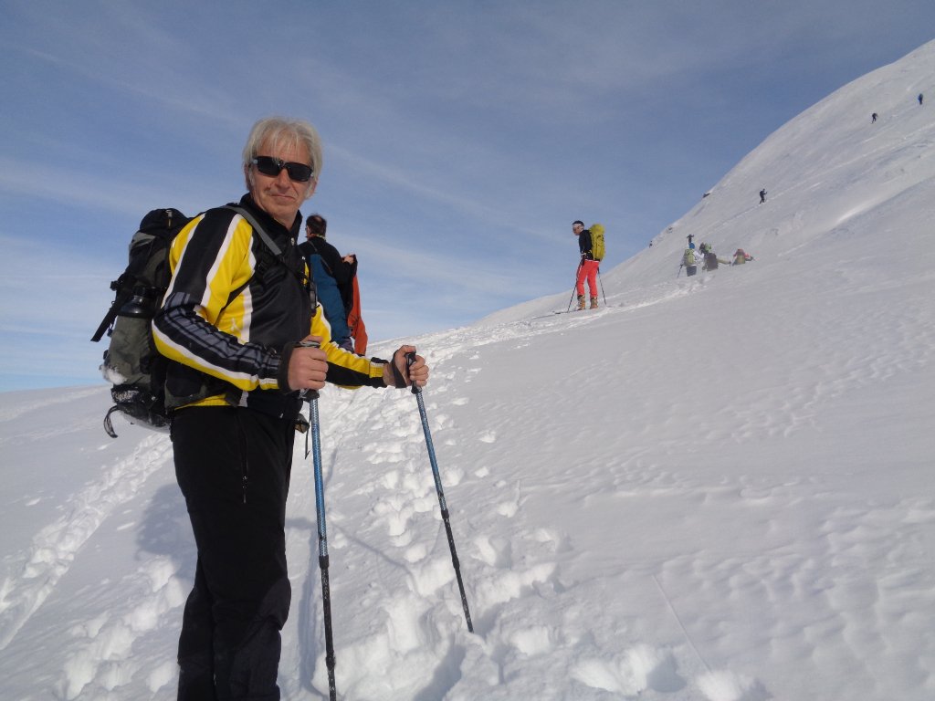 il compagno di gita Ovidio, che, scordate le proprie ciaspole “professionali”, se l’e’ cavata ugualmente con quelle scadenti e difettose affittate a Cesana;
