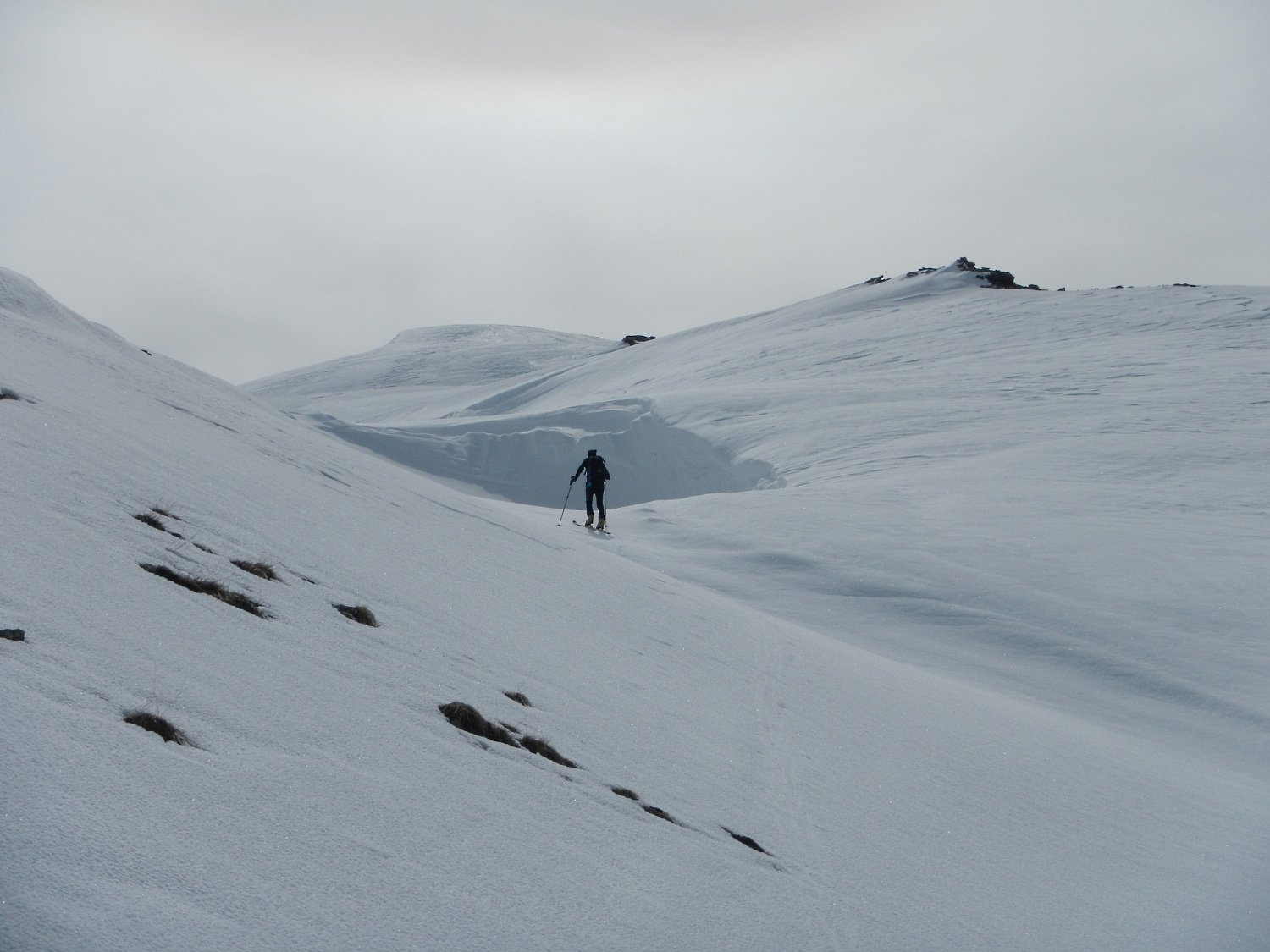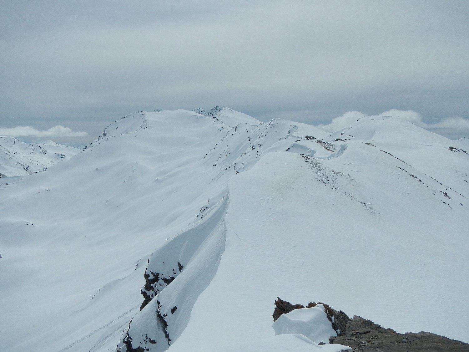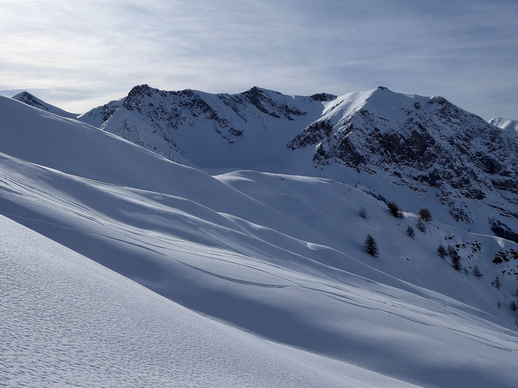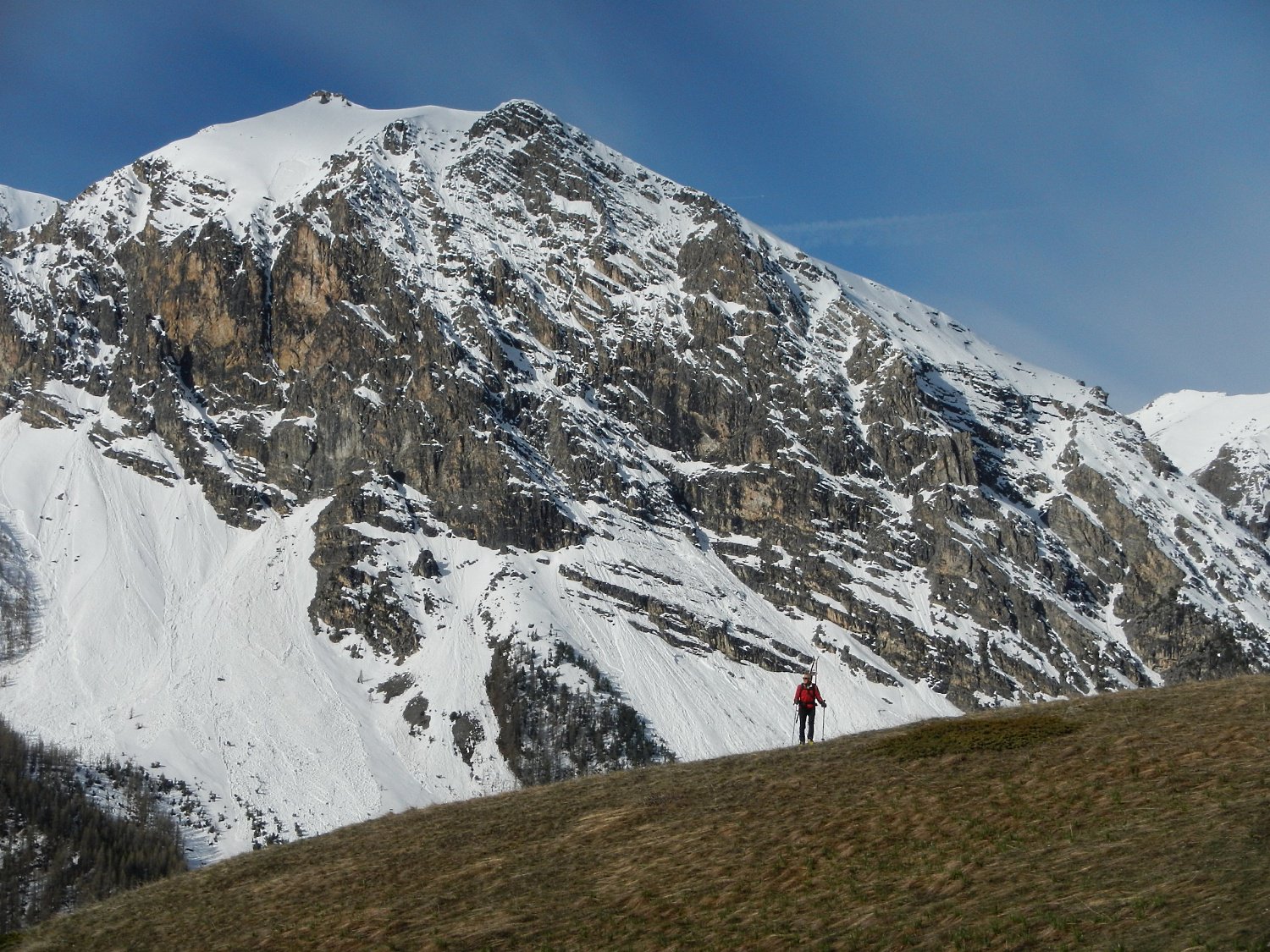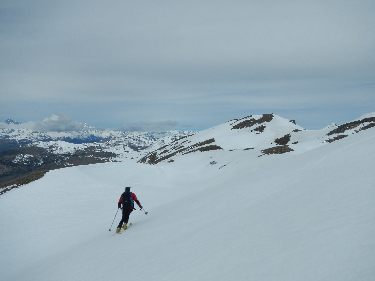 Possibile proseguire fino alla cima 2944 e scendere su Les Fonds, oppure fermarsi alla prima cima 2708 e scendere dall'itinerario di salita sui pendii esposti a NW con neve spesso fresca