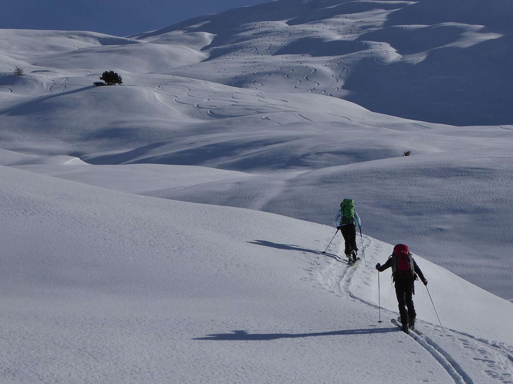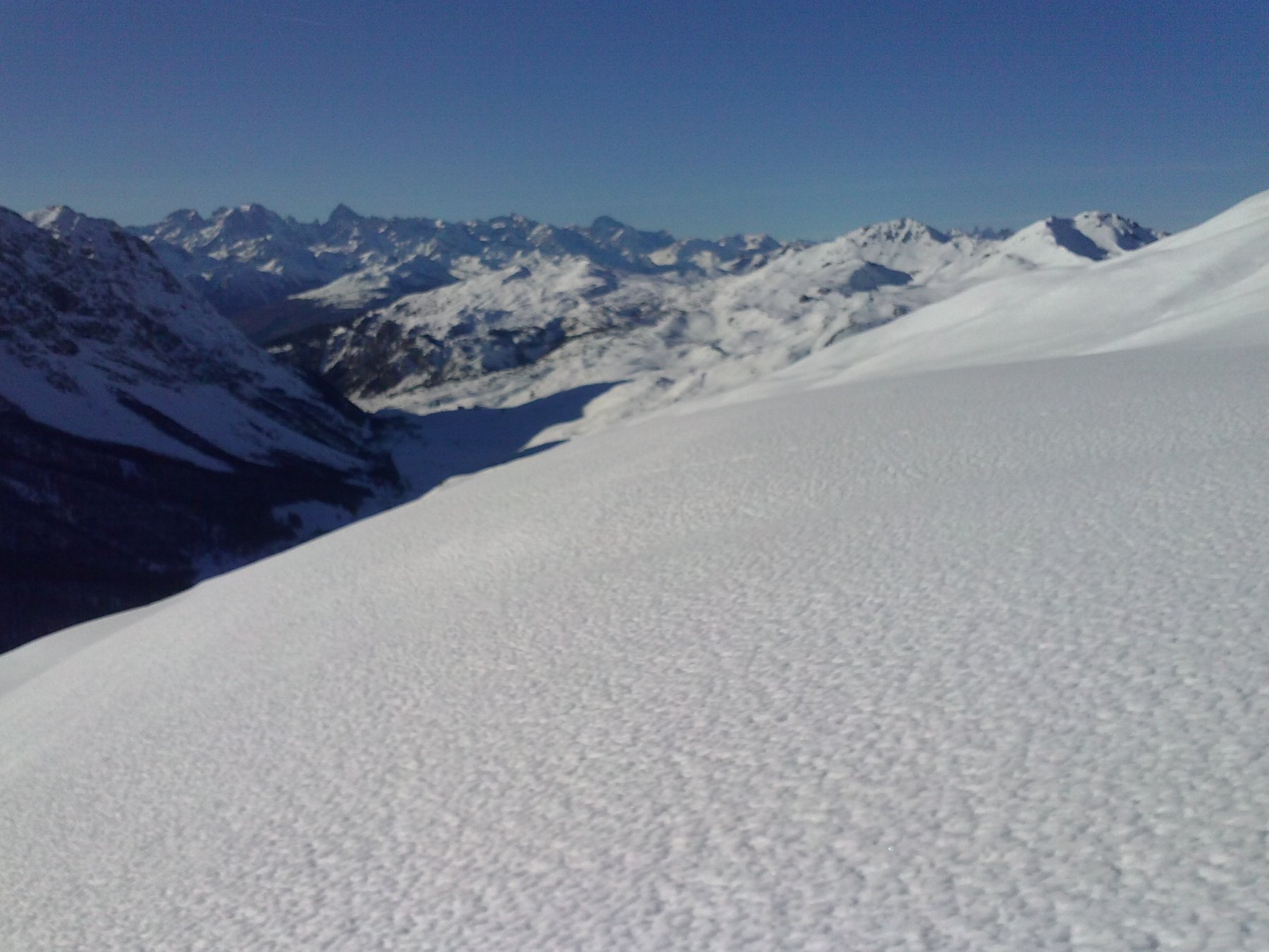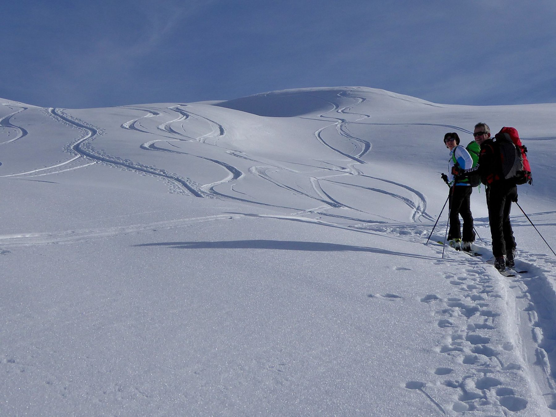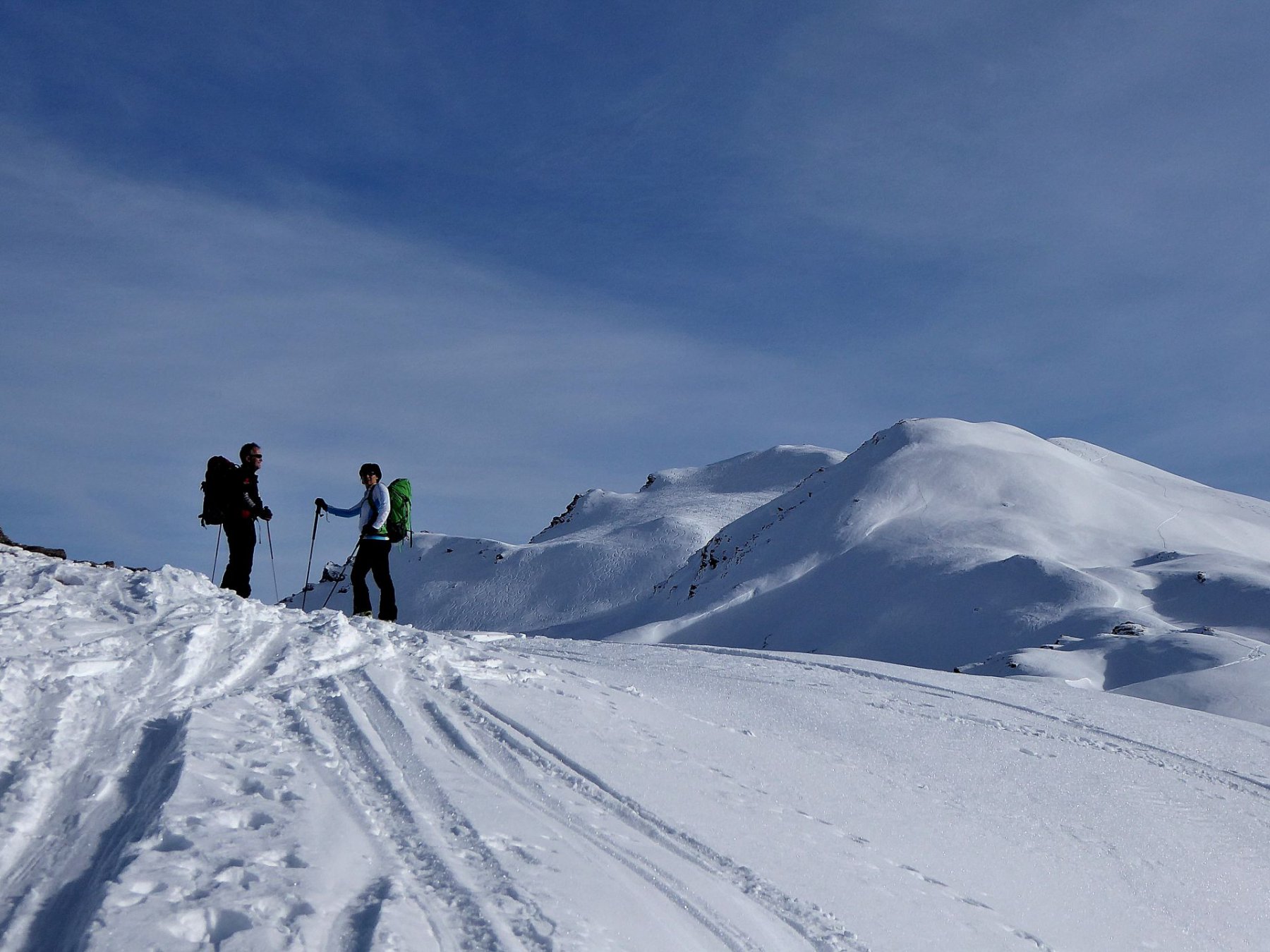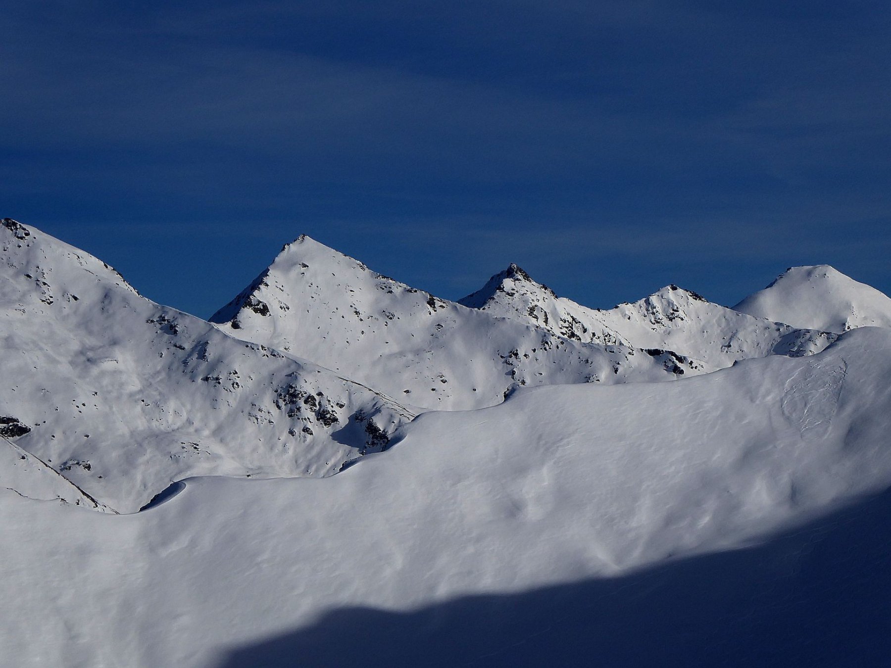 Possibile proseguire fino alla cima 2944 e scendere su Les Fonds, oppure fermarsi alla prima cima 2708 e scendere dall'itinerario di salita sui pendii esposti a NW con neve spesso fresca