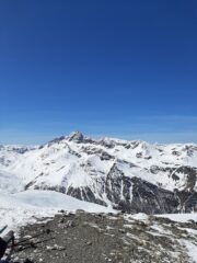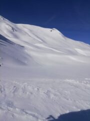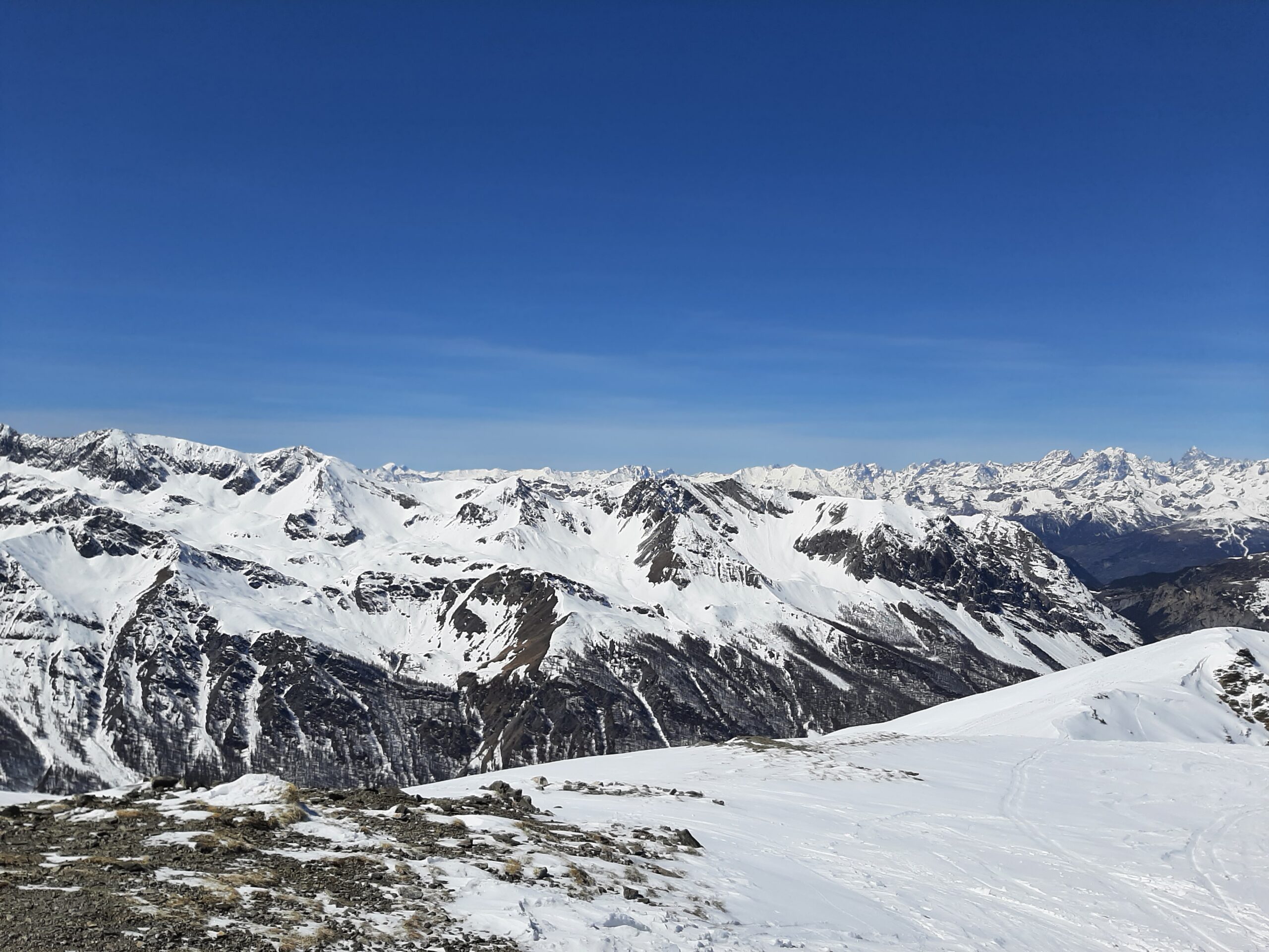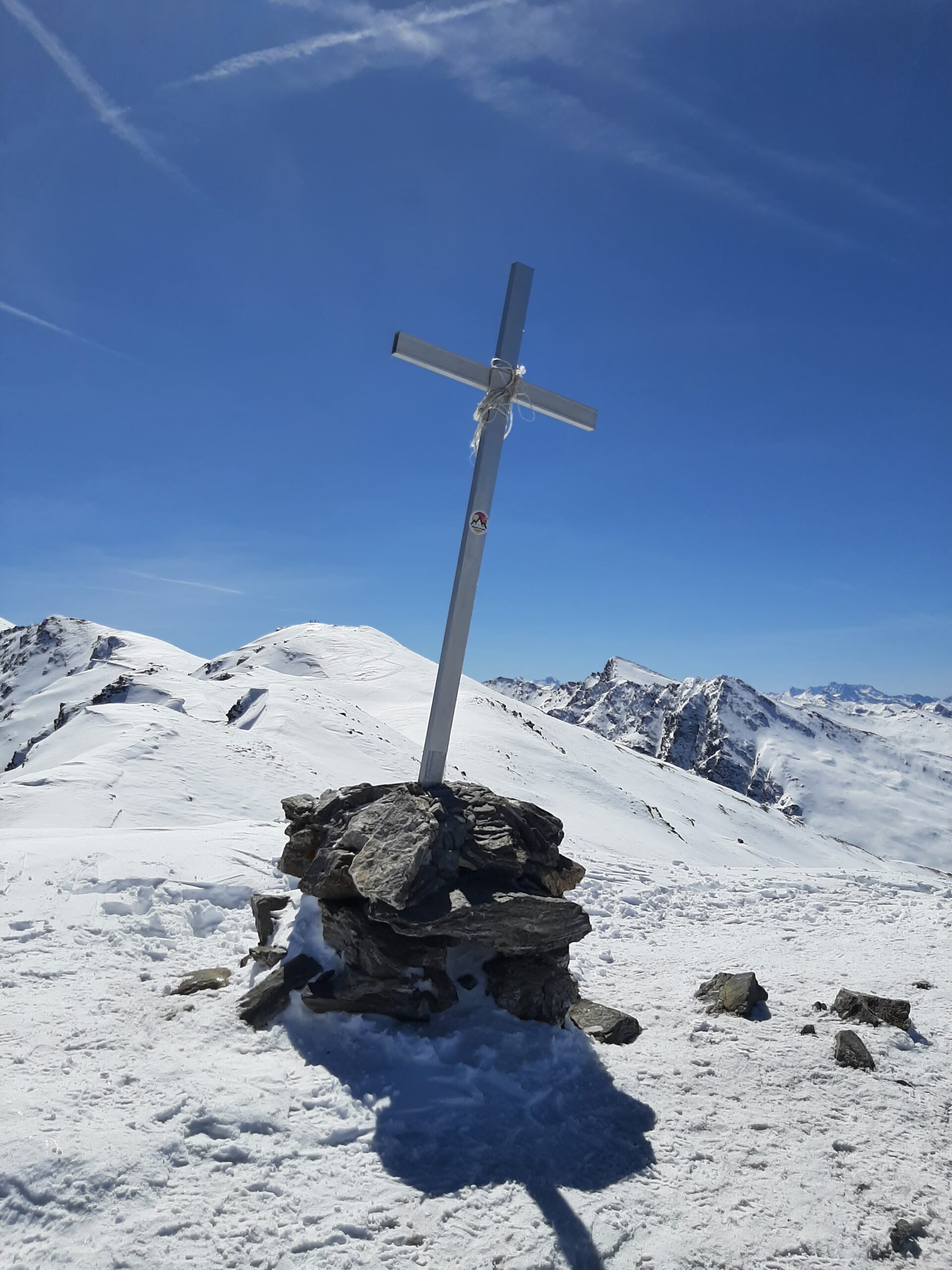 Abbiamo seguito il percorso degli scialpinisti,più dritto ma più veloce. Canale valloncello in ottime condizioni. Traversone lungo tracciato e poi fino in vetta a goderci il panorama davvero immenso.