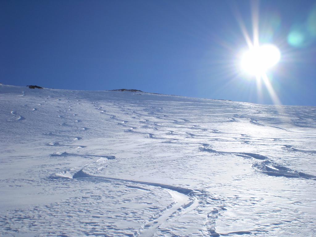 Uscendo dall’itinerario di salita si possono ancora trovare zone con neve vergine.