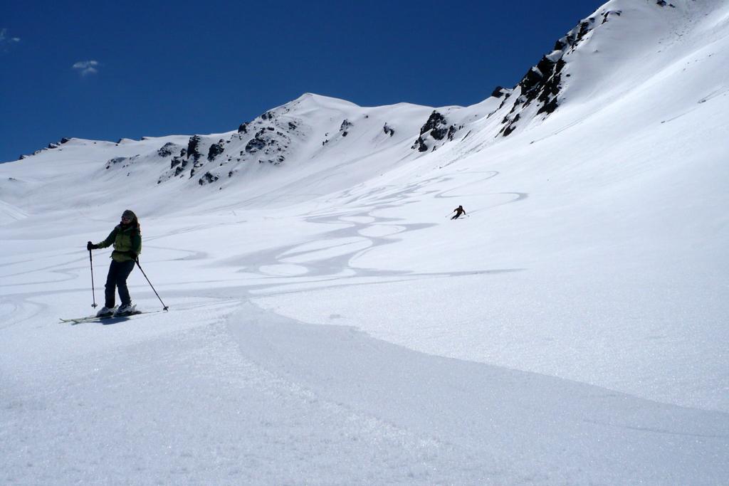 Con fuoristrada siamo riusciti a parcheggiare due tornanti sotto Chabaud partendo da circa 1850 m. Si portano gli sci in spalla per circa 15 minuti fino al ponte sul torrente superate le case di Chabaud a circa 1950 m. Da qui neve continua ed abbondante fino in cima. Bellissimo il vallone di salita peccato fosse “macchiato” dalle tracce di motoslitte che arrivavano fino sulle creste… Mah… Ultima parte della salita con neve dura che ci ha costretti ad usare i coltelli. Dalla cima la vista spazia sulle montagne circostanti ancora cariche di neve. Suggestiva la lunga cresta che porta verso il Terra Nera. Discesa fantastica su neve primaverile per i primi 300 metri circa poi seconda parte con neve che iniziava a mollare ma comunque sciabilissima. Ultimi 100 metri e traverso per raggiungere il ponte sul torrente con neve molle che in alcuni punti obbligava a spingere. Comunque bella giornata di sole e probabilmente, visto il week-end di mare/arrampicata in programma per il prossimo fine settimana a Finale, ultima gita della stagione…