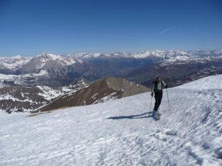 Temperature decisamente più fredde oggi la neve non ha mollato neppure nella parte bassa, evitando i solchi dei giorni scorsi si riesce a fare una discesa decisamente bella su ottima neve primaverile, ottimo anche l’innevamento da Chabaud in sù, fin lì bisogna portare gli sci.