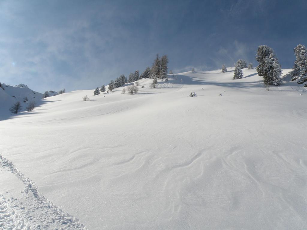 Oggi tanta gente (circa una cinquantina), neve bellissima quanto abbondante. Totale assenza di vento per cui non si è sentita la bassa temperatura. La traccia è ben segnata, alcuni pendii nonostante l’affollamento sono rimasti intonsi…basta cercarli e raggiungerli!!!