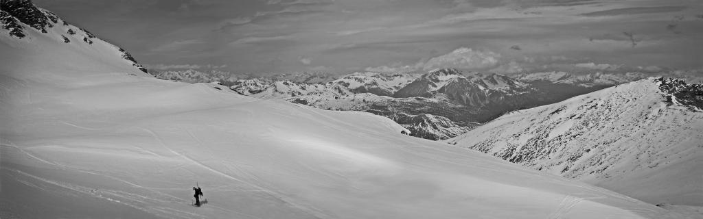 La discesa è stata sicuramente poco entusiasmante vista la neve molto umida, davvero al limite dello sciabile, tuttavia alcune placche più dure e portanti permettevano a tratti di accellerare.